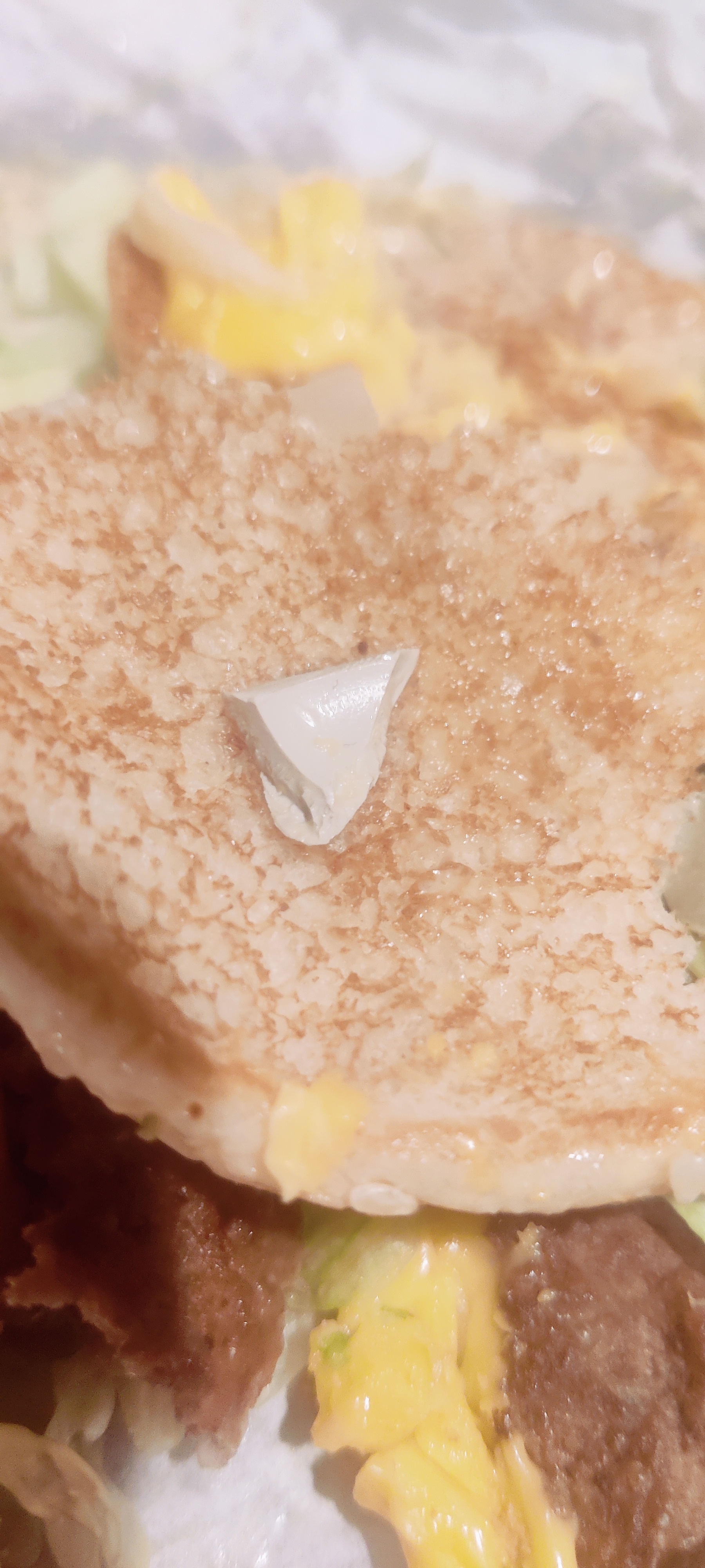 J'ai trouvé ce morceau de céramique ce soir, dans un Big Mac. Merci pour le petit cadeau. Évitez cet endroit dégoûtant.