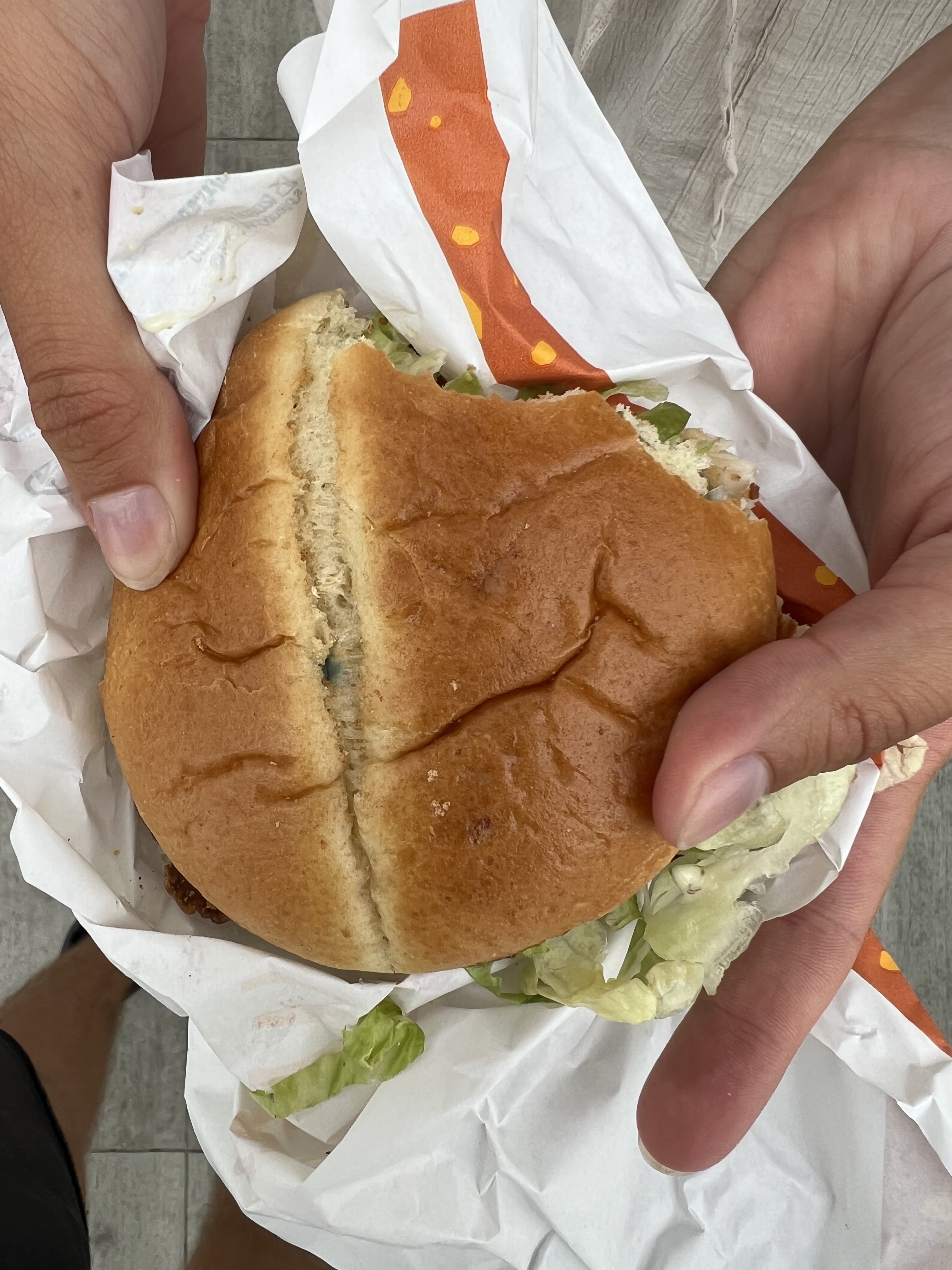 Hamburger POURRIT moisissures sur l’hamburger. Commande remboursé.