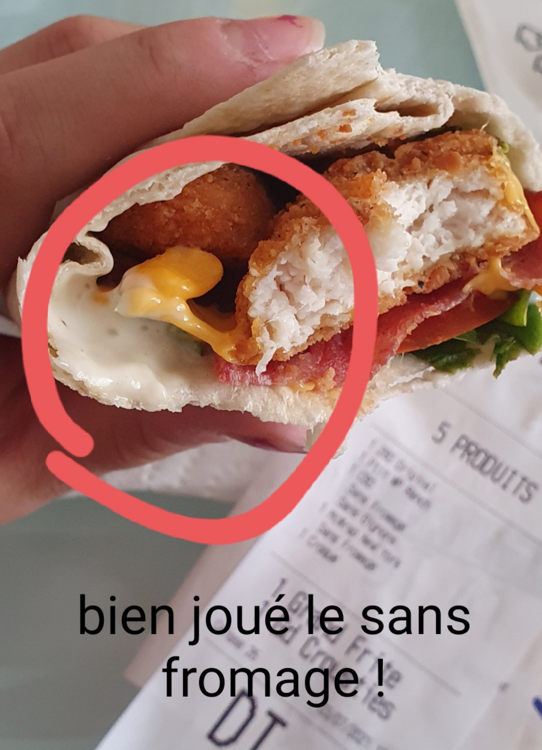 J’ai adoré le bout de papier dans mon burger merci la cuisine 👍🏻