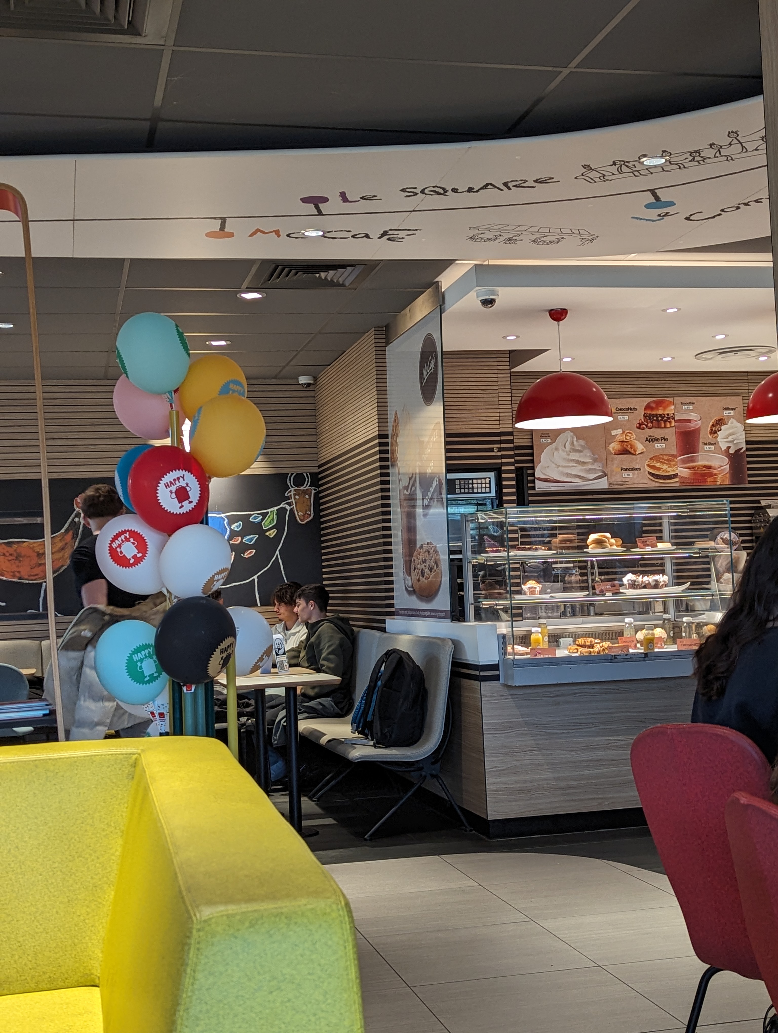 Jamais déçu de ce macdo - pas d'erreur commande - pas de machine en panne - personnel souriant et compréhensif - des jeux Après on y va pas pour l'ambiance