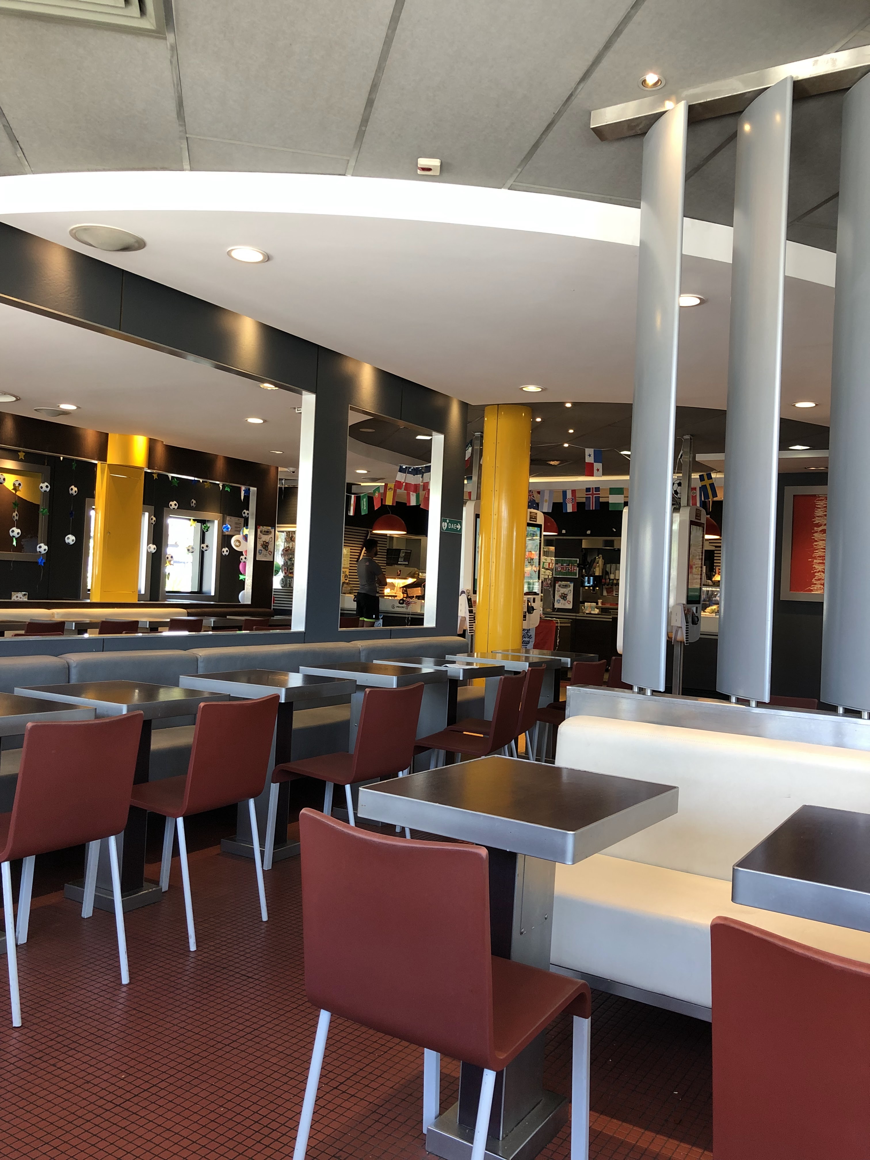 C'était la 1ère fois que j'allais dans ce McDo et la 1ère chose que j'ai dite en rentrant magnifique mobilier je n'avais jamais vu ça dans un fast-food. Le seul truc que j'ai testé pour la 1ère fois, c'est la vaisselle réutilisable et franchement je n'ai pas du tout apprécié alors je sais bien que tout ceci est le nouveau concept mais j'adhère pas du tout donc je ne mangerais plus sur place dans un fast-food.