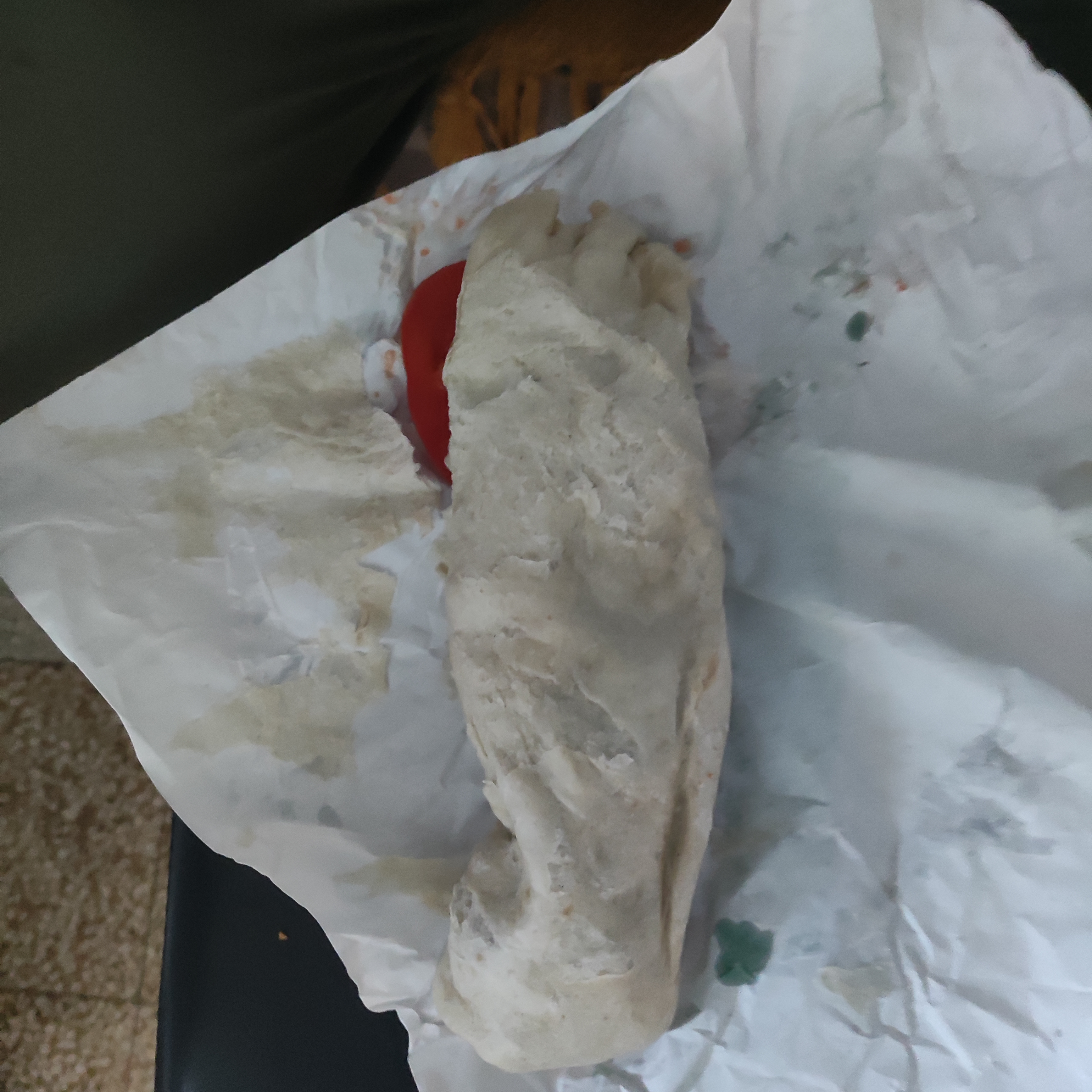 Voici le wrap NY que je viens d'obtenir dans ce restaurant. Il fait la taille d'un wrap a 2€, la galette est collante (trop cuite) c'est fade et la garniture est pas cuite ( poulet).