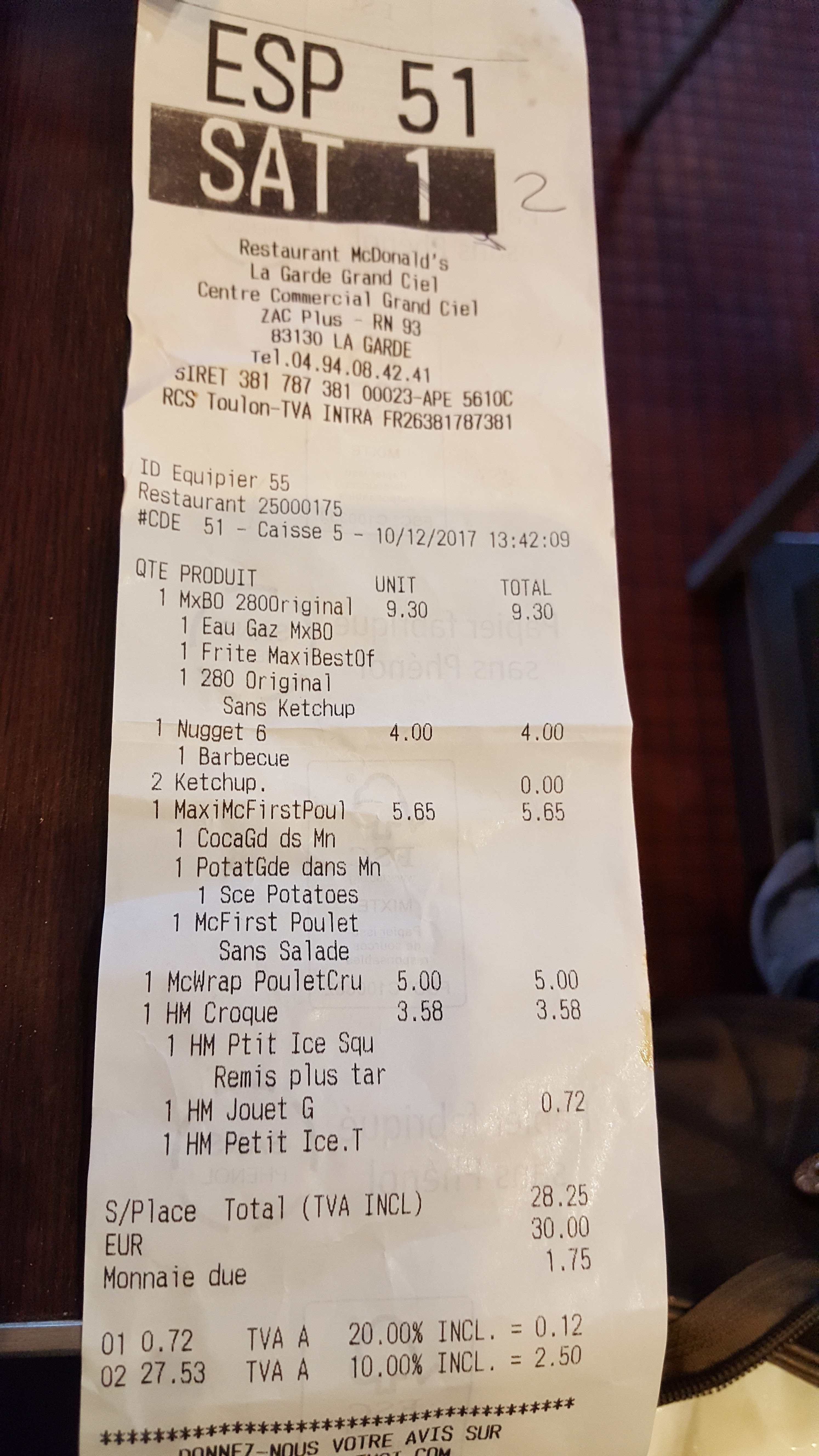 De toute la région toulonnaise, c'est toujours dans ce Mac Donald's que je suis servi le plus rapidement. L'accueil y est toujours bon. En revanche, ces 4 dernières visites, quelque chose à toujours manqué dans mes commandes. D'abord les sauces et puis les nuggets... Je n'avais qu'à mieux vérifier avant de partir. Faites-en de même.