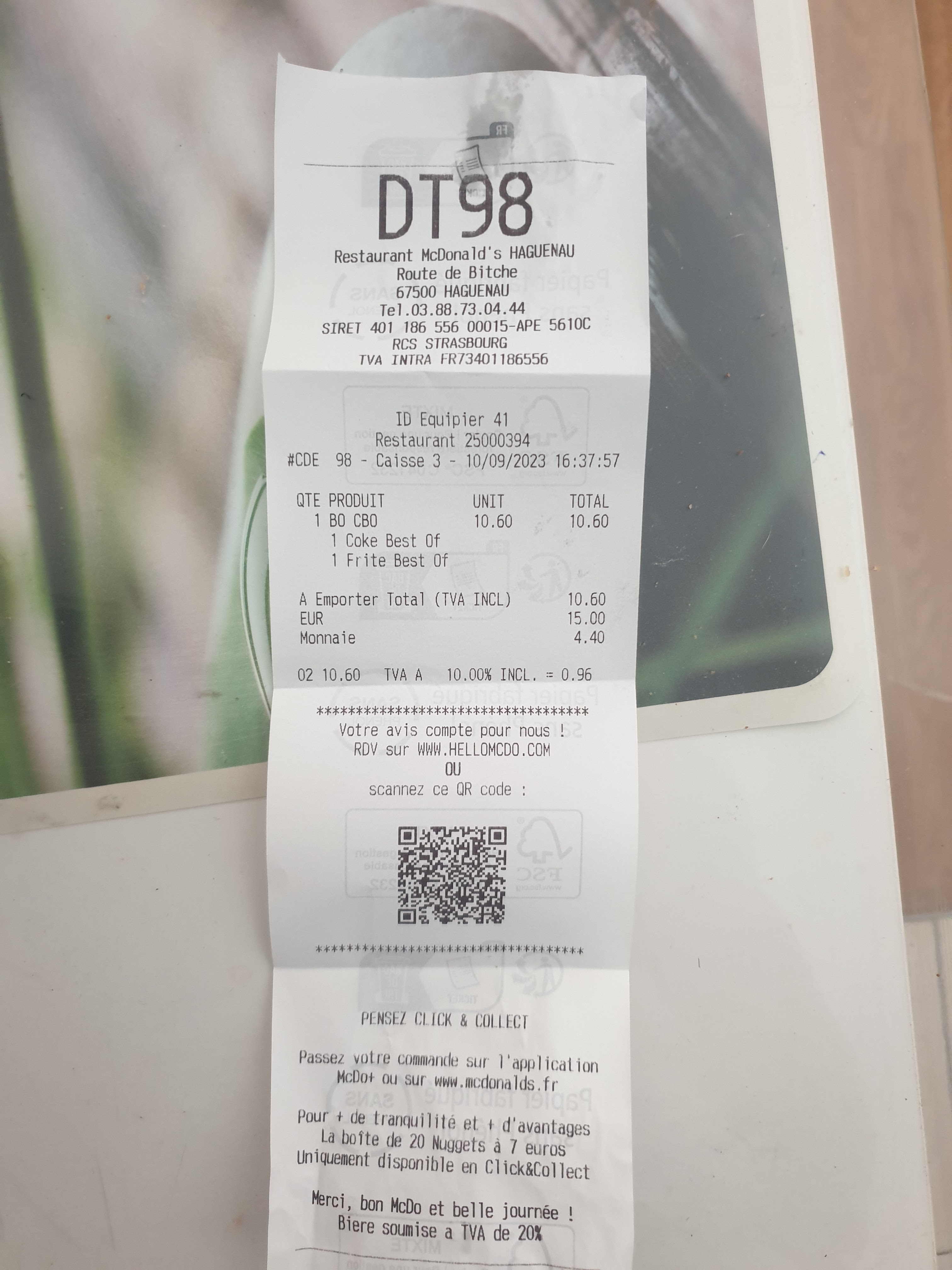 Bonjour, Cliente depuis de nombreuses année je peux vous assurer être toujours très satisfaite du service! Le jour où on me demande de mettre un petit avis il y a eu de nombreuses erreurs malheureusement… 2 deluxe à la place de deux royal cheeses … glaçons dans les boissons … mauvaises sauce… je reviendrais tout de même mais faites attention s’il vous plaît la prochaine fois, car je serais triste de ne plus avoir à revenir ( je vous aime tout de même )