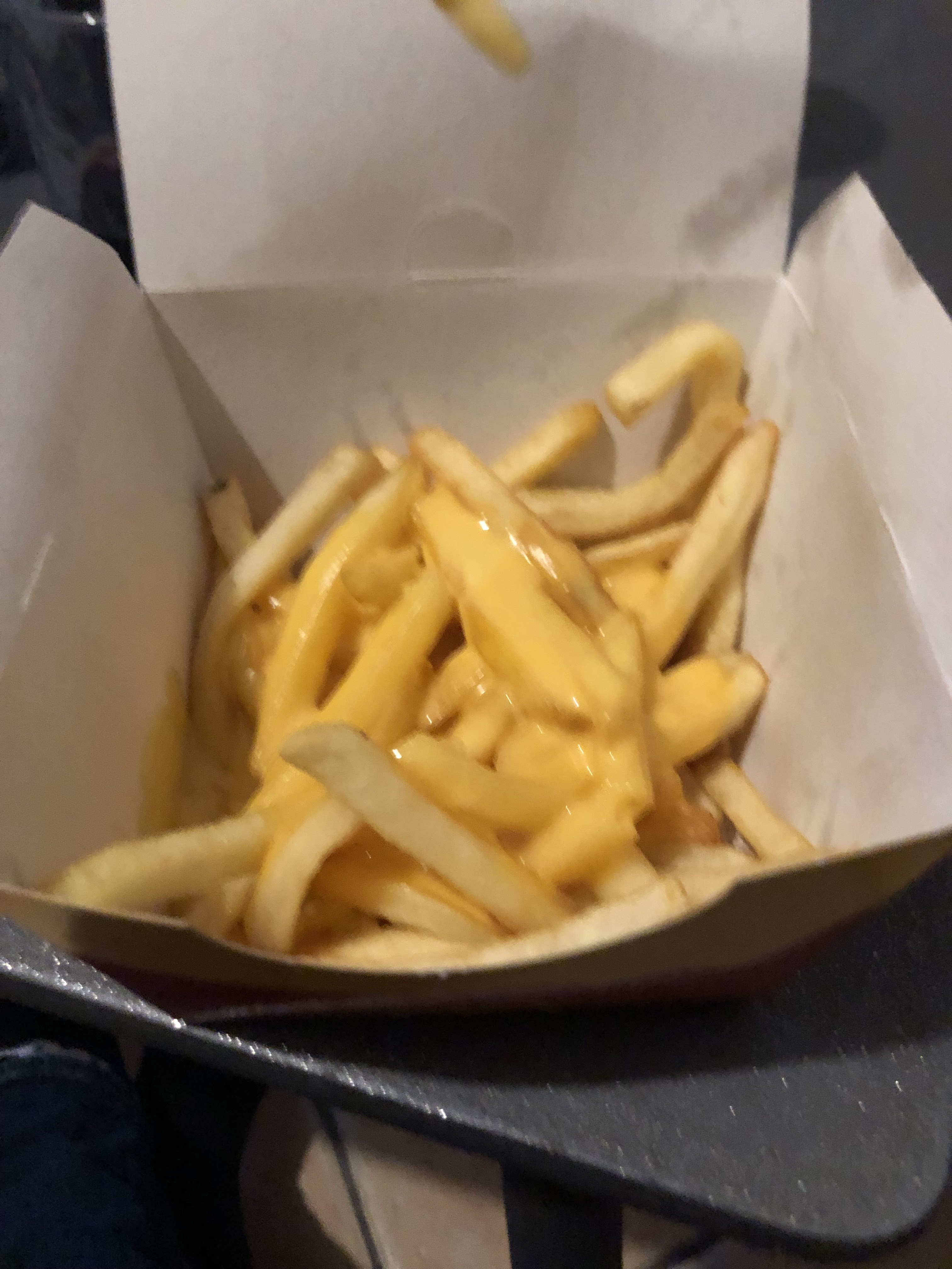 Bonjour, mon conjoint a pris un maxi Best of chicken nuggets avec coca et McFlavor Frites (comme les King fries de Burger King) mais il faut rajouter 1€ de plus et quand on voit la taille de la boîte c'est vraiment as corect. Il y a autant de frites que dans un Best of et franchement la taille est abusée vu le prix total du maxi Best of. Ça devient n'importe quoi. Dommage de ne pas pouvoir mettre de photos pour vous montrer. A éviter