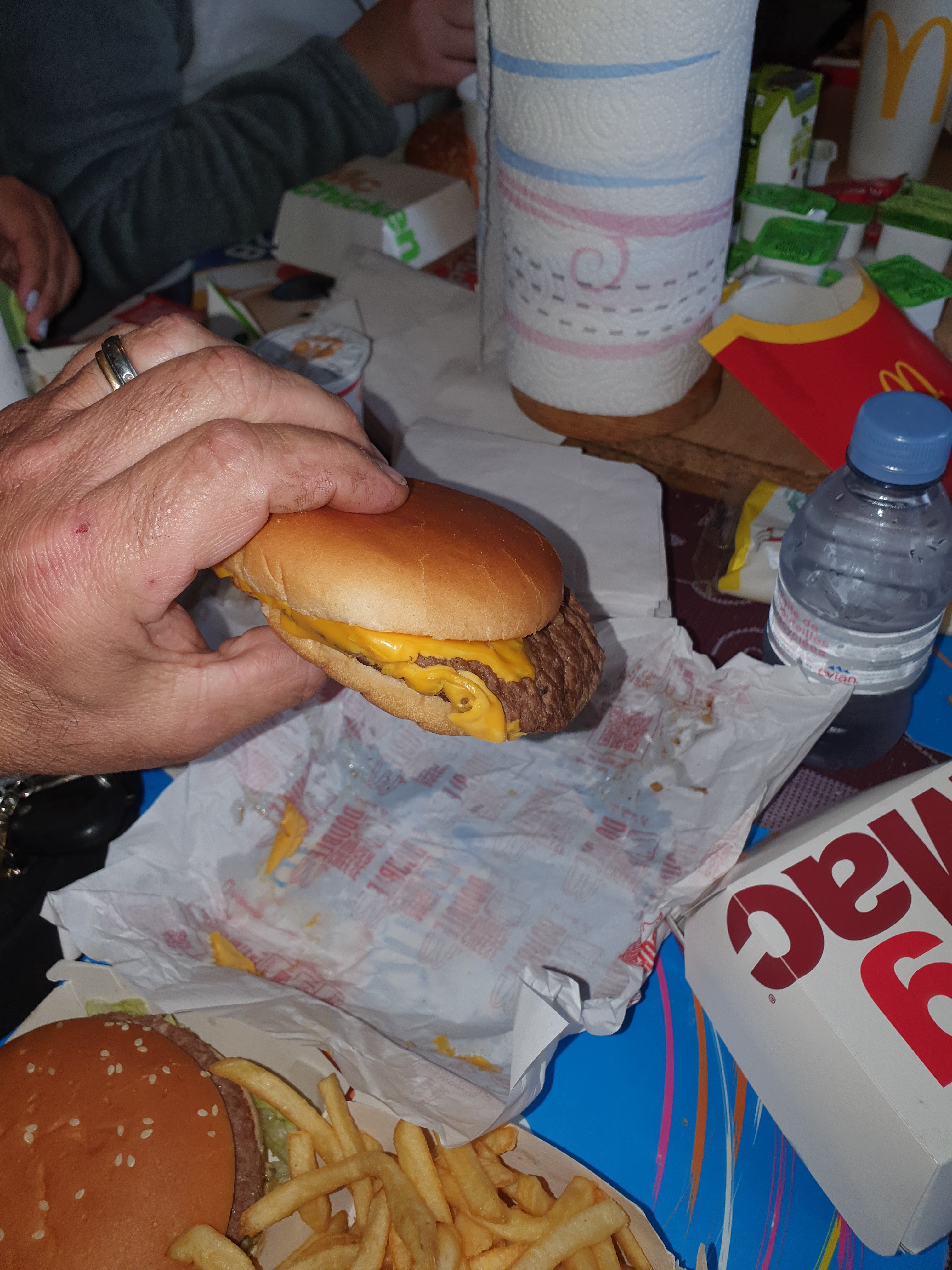 Non mais c'est fou ..... Je demande s'il y a encore des boîtes de 20 nuggets a partager, on me dit oui, j'en prends deux et on me file du chèvre alors que je n'aime pas ça ..... Les trois voitures de devant sont revenus parce qu'il y avait des erreurs dans les commandes.