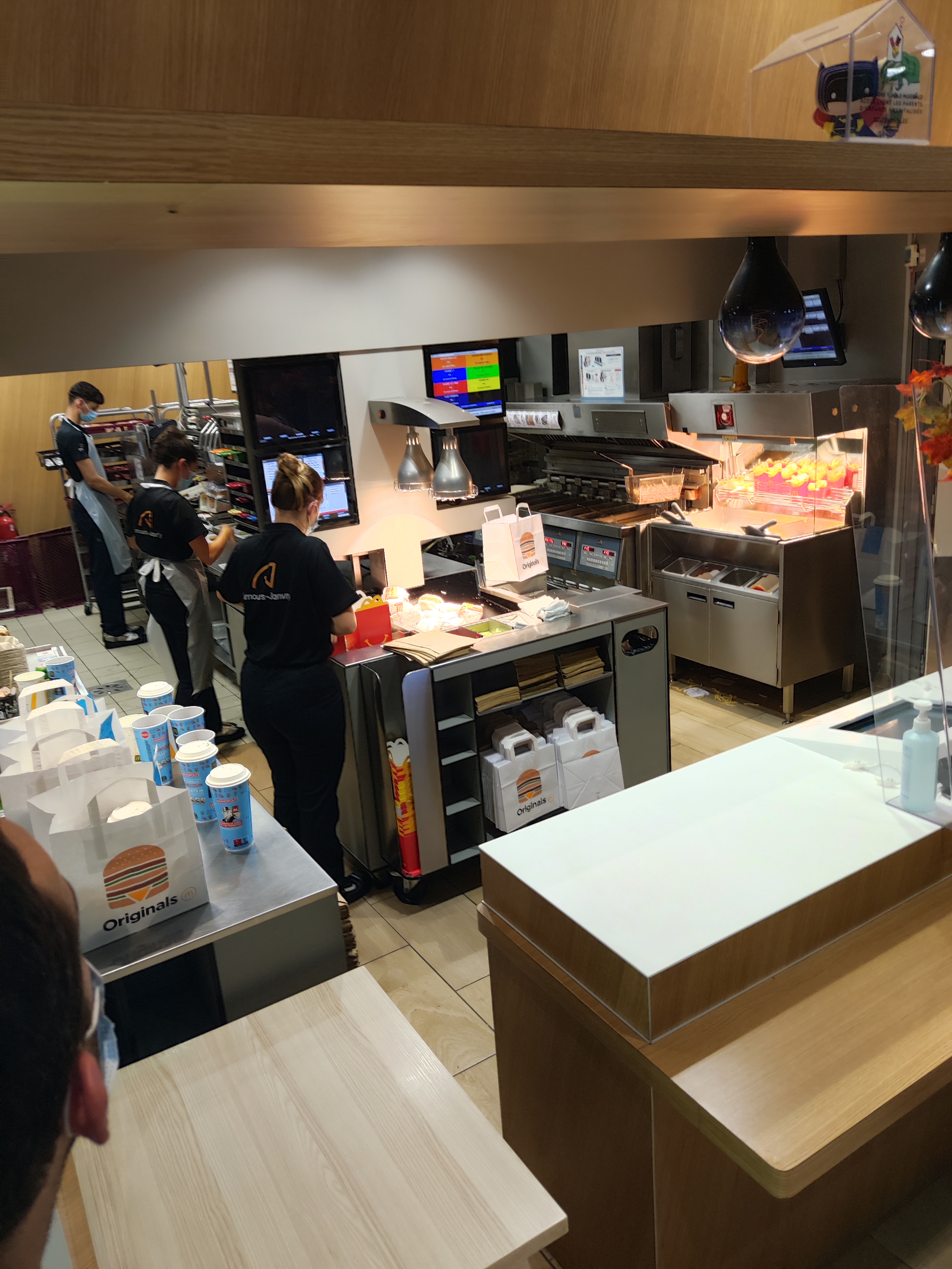 Manque de choix par rapport a un mac do classique. Hygiène a revoir, personnel féminin au cheveux long sans charlotte ou filet, personne ne porte de gants, un cuisinier a manipulé les poubelles puis a repris la cuisson des hamburgers sans passé par la case robinet+savon enfin bref .....