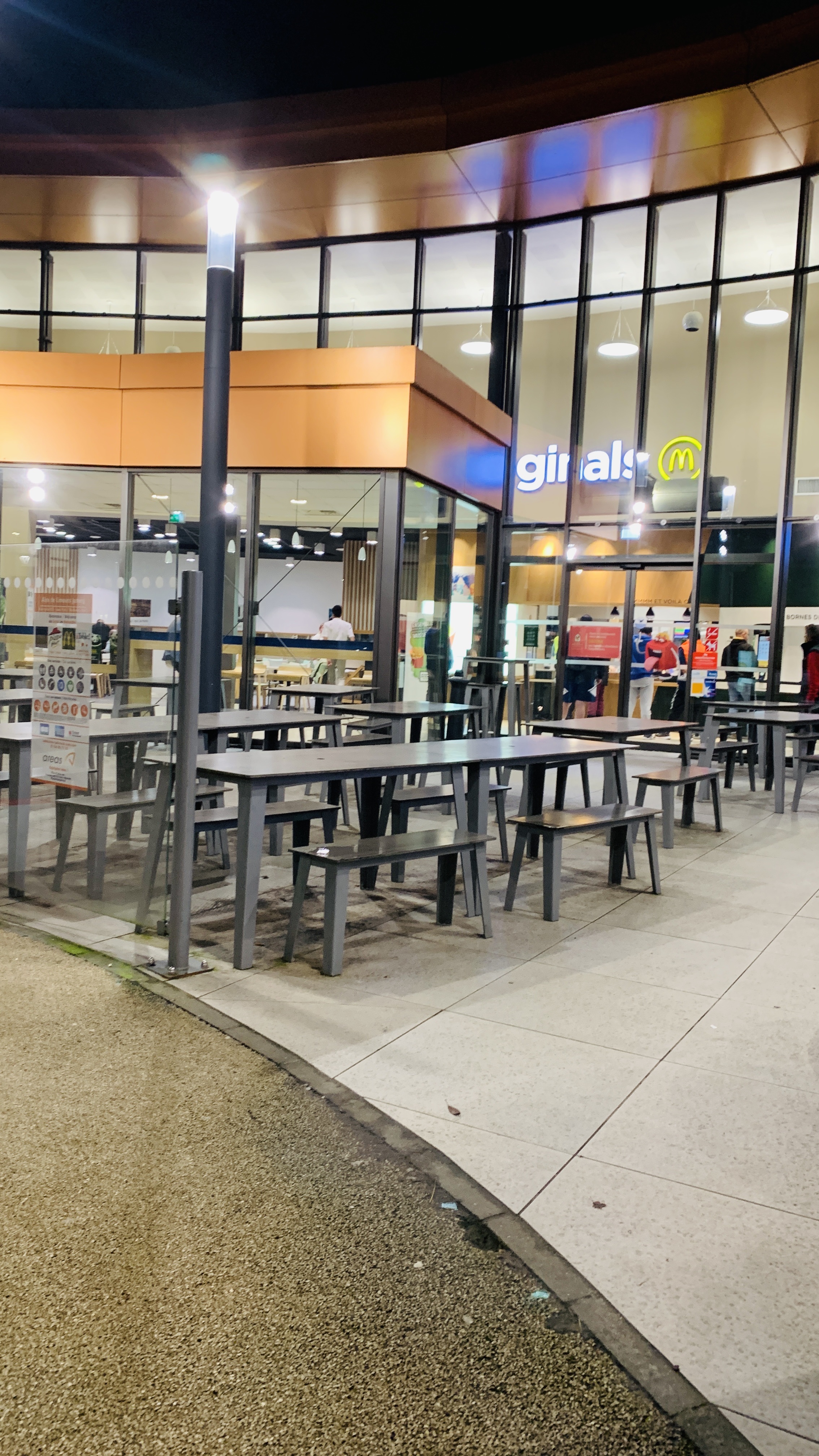 Sur internet on nous annonce que le McDo ferme à 22h30. Sur place c’est indiqué 22h. A 21h30 tout est fermé (et ce depuis sûrement un bout de temps puisque même le rideau métallique est fermé sur la caisse). Très décevant.