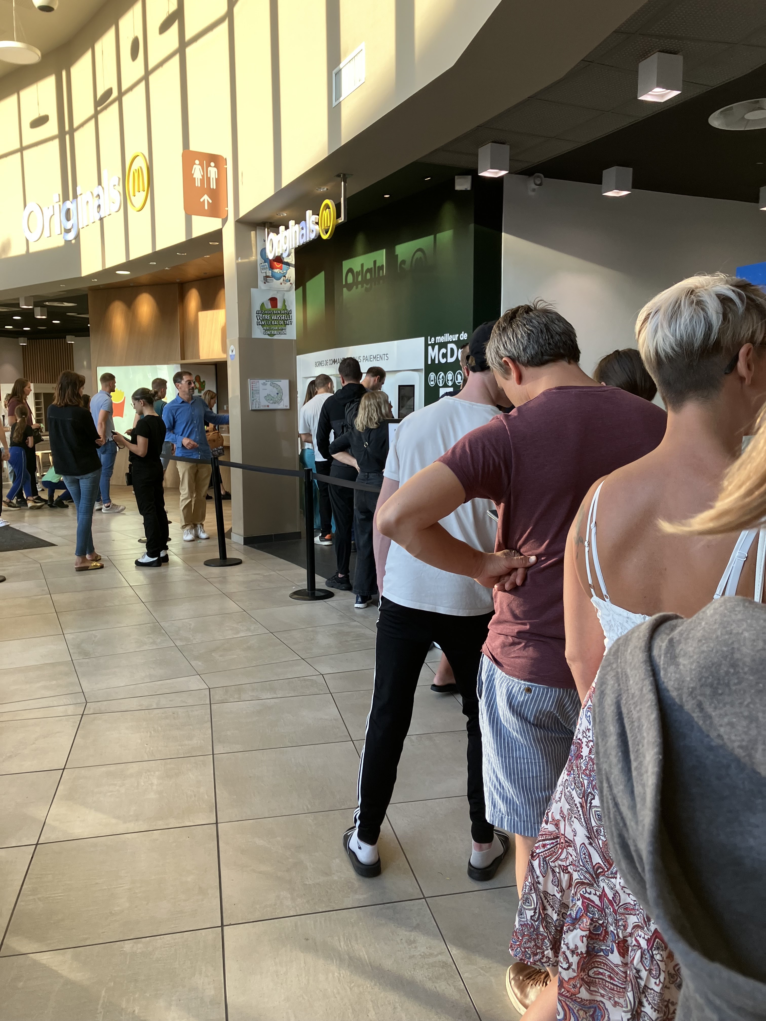 Plus de 2 ans que nous n’avions pas mangé MacDo, ce fut un soulagement quand nous arrivèrent sur cette aire d’autoroute lorsque nous le vîmes. Arrivé à l’intérieur, la déception. Une queue d’une longueur inimaginable. Heureusement que le personnel MacDo est toujours là, serviable pour trouver une solution : une serveuse a pris nos commandes pour plus de rapidité. Résultat, nous n’avons attendu que 10min. Malgré le peu de choix et l’absence d’alternative végétarienne, si vous voulez manger un bon BigMac, vous ne serez pas déçus. Nous reviendrons au MacDo.
