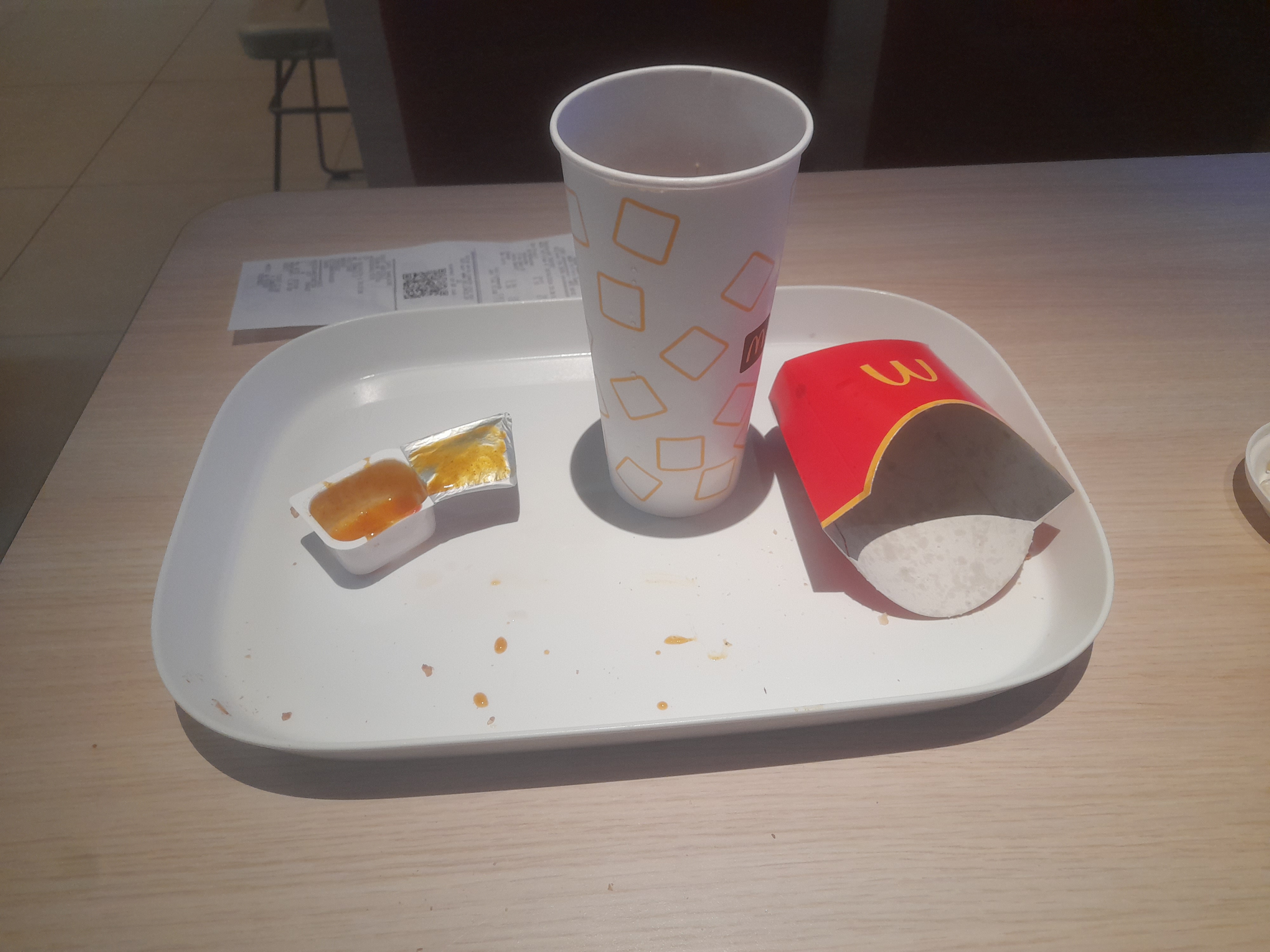 Tables collantes, WC pas très propre... L'attente un peu longue mais en semaine tard, ça peut se comprendre. Pour la nourriture, ça reste du mac do 😆. Par contre 1er que l'on fait avec le plein de vaisselle lavable 👍