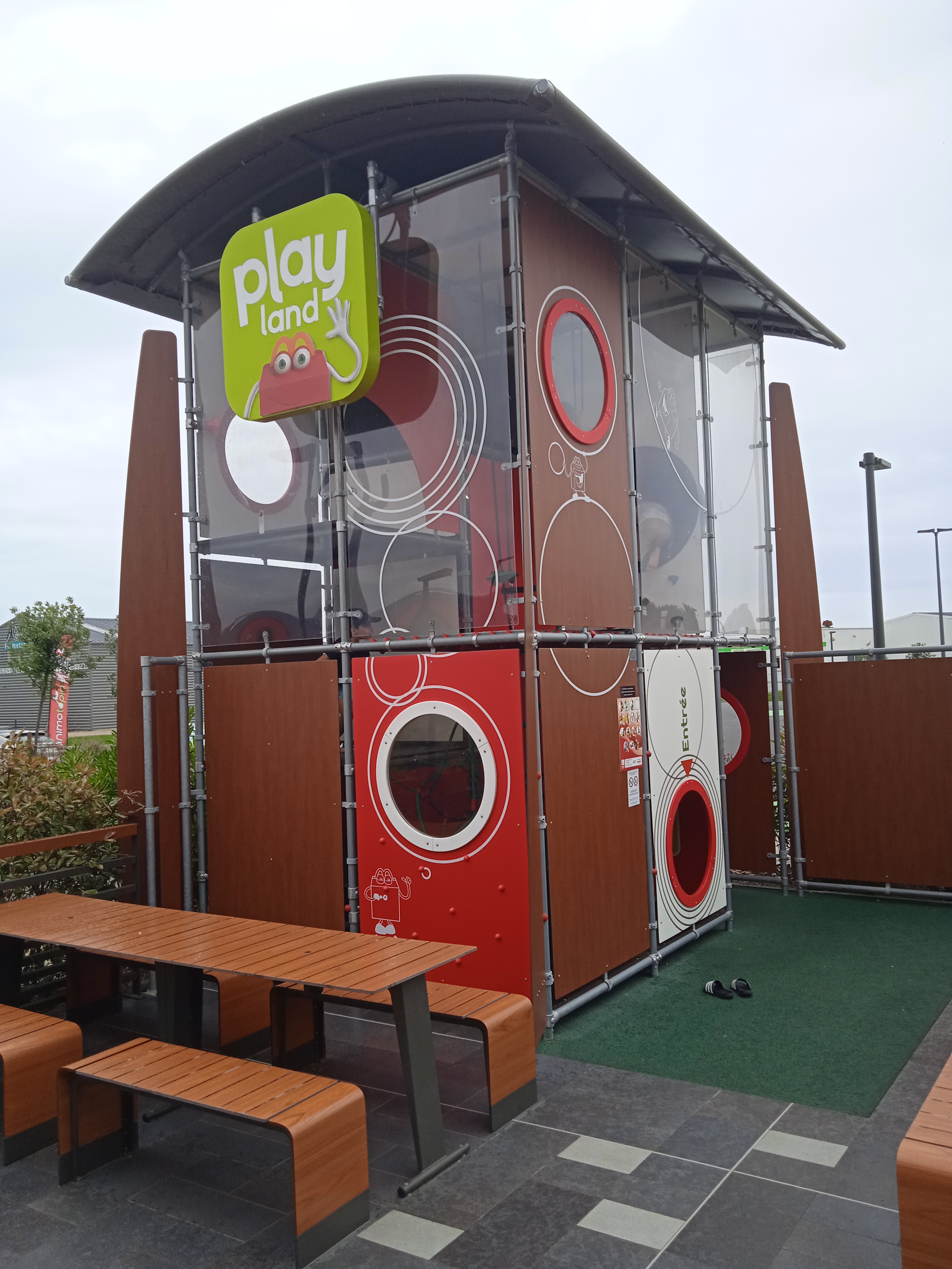 Macdonald récent, mais déjà démodé. Je ne comprends pas du tout le choix artistique, le MacDo ressemble à une garderie. Pour autant, le staff est aimable et capable. De plus, le service est assez rapide et globalement, l'ambiance semble être bonne au sein de l'équipe. Les prix sont.. ceux du Macdonald aujourd'hui = trop haut vis-à-vis du public visé.