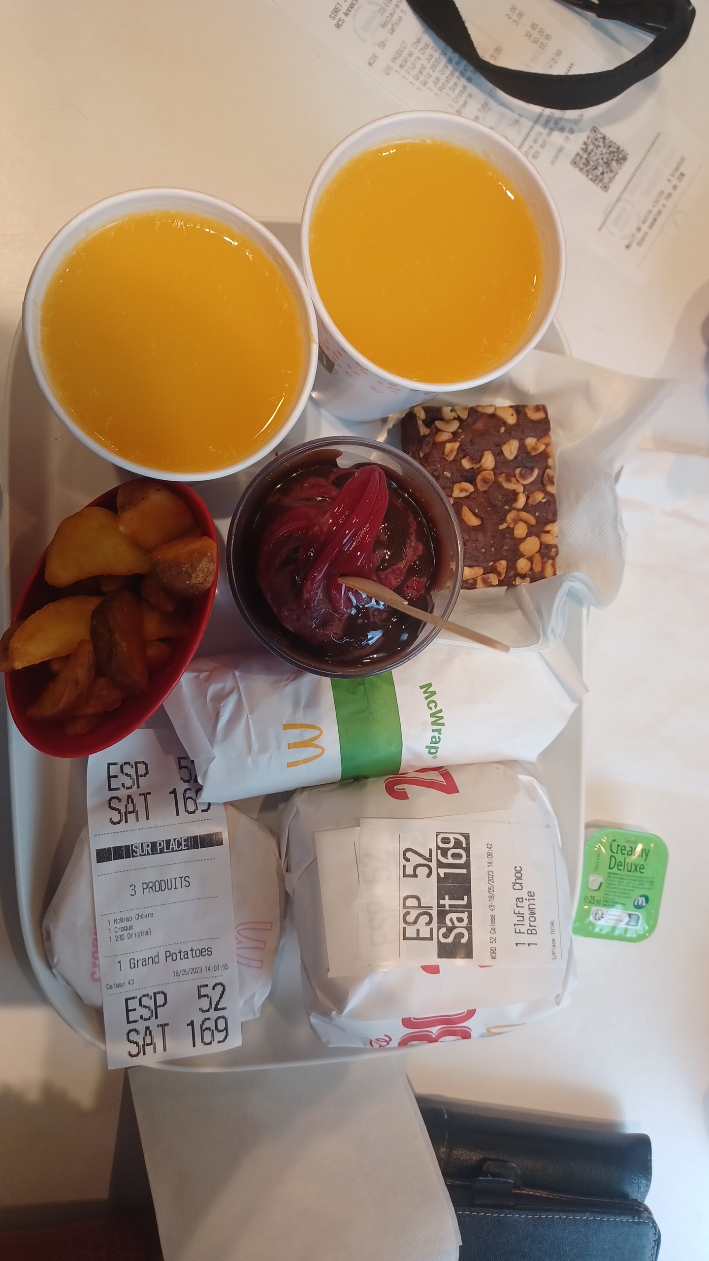 Vive les MC Do des années 90 !!! Eau gazeuse mais plate ! Nouvelle génération certainement ! Gobelet sans couvercle, très hygiénique !!! Sandwichs froid ! Sans oignons demandé mais quelques oignons dans le sachet. 1 sandwich en moins dans la commande You ouuuuuu !!! C'est la fête ici. Déçu !!!