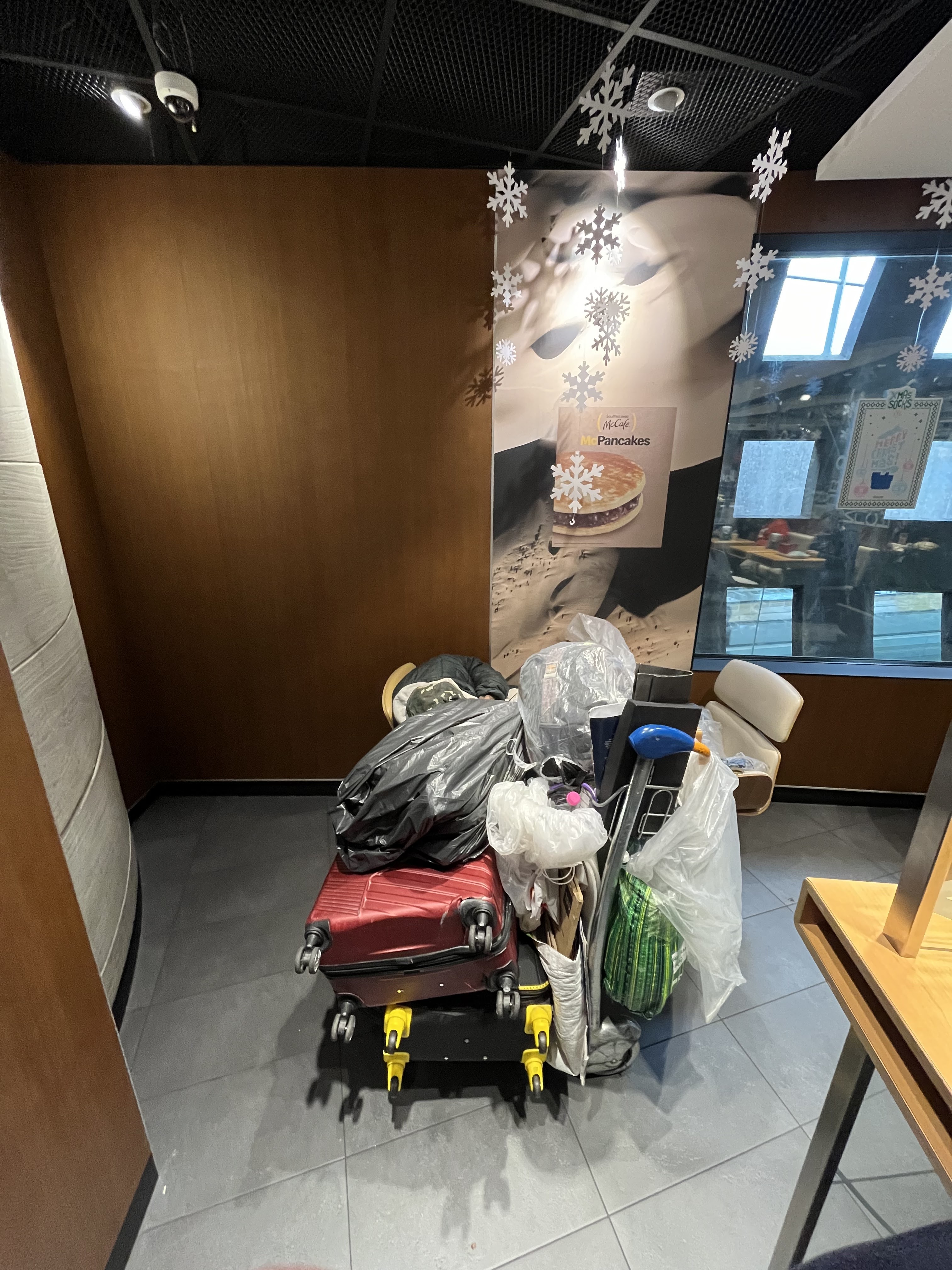 Tout simplement le pire McDo de ma vie. Tout était si raté et catastrophique qu’on pourrait même y voir une certaine poésie. Des erreurs et oublis dans la commande, des aliments froids et pas cuits… et que serait un mauvais repas sans une souris qui passe sous les tables ? L’inefficacité et la désorganisation totale en cuisine frôlent le somptueux - aucune commande n’arrivait à sortir, une débâcle complète. Ça aurait pu être drôle si nous n’étions pas dans un aéroport, et donc extrêmement pressés.