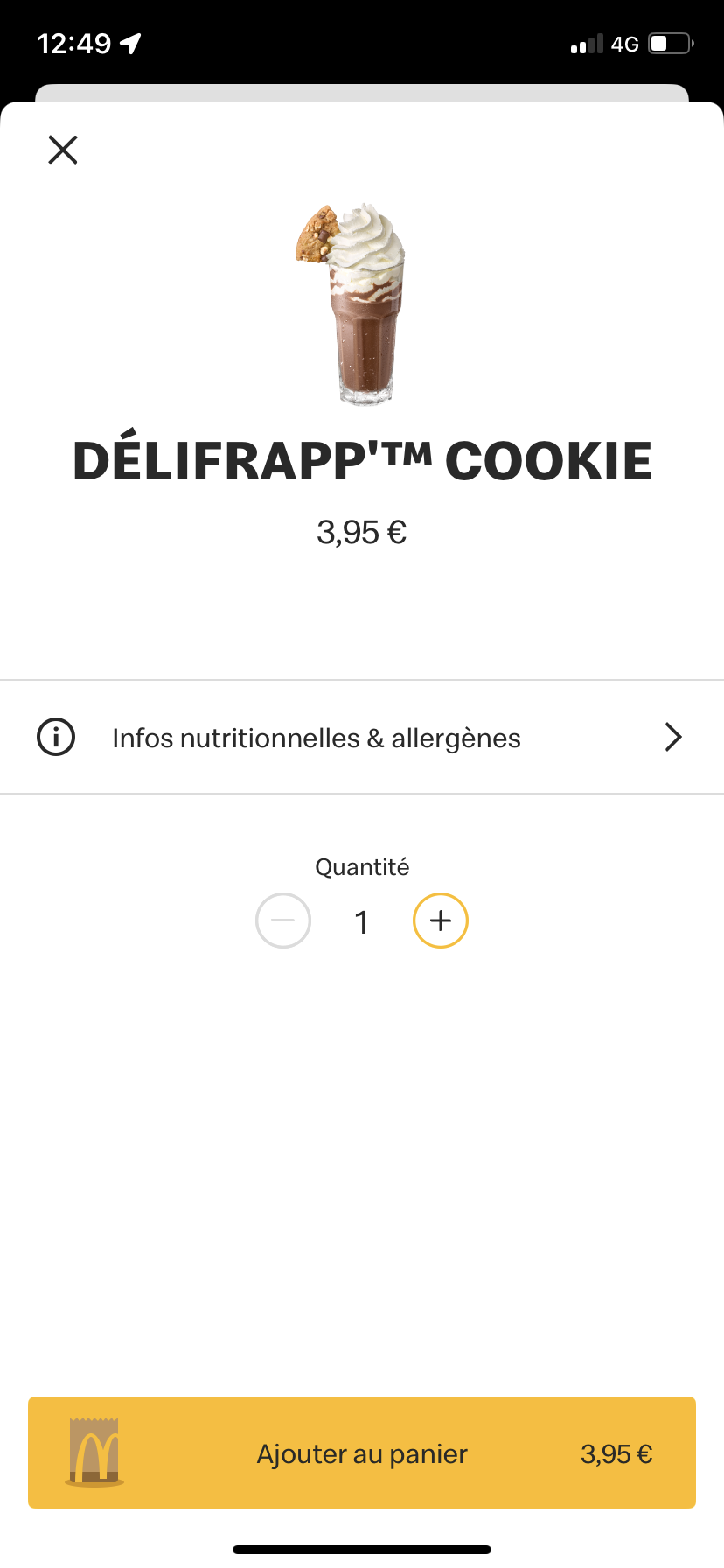 Comme chaque fois, il y a un problème dans les menus vraiment déçu, aujourd'hui vendredi 10 juillet nous prenons à emporter à la maison belle surprise dans un menu maxi très peu de frites une honte pour le prix, très peu de caramel mcflurry, choconuts tablette pas fondu, il y a toujours un problème très déçu.