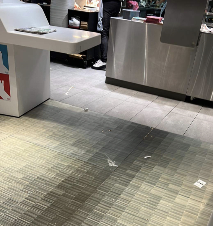 Le sol était salle et glissant. Dangereux pour les usagées. Défaillance des bornes du Drive j'ai fait les remarques en ce sens.