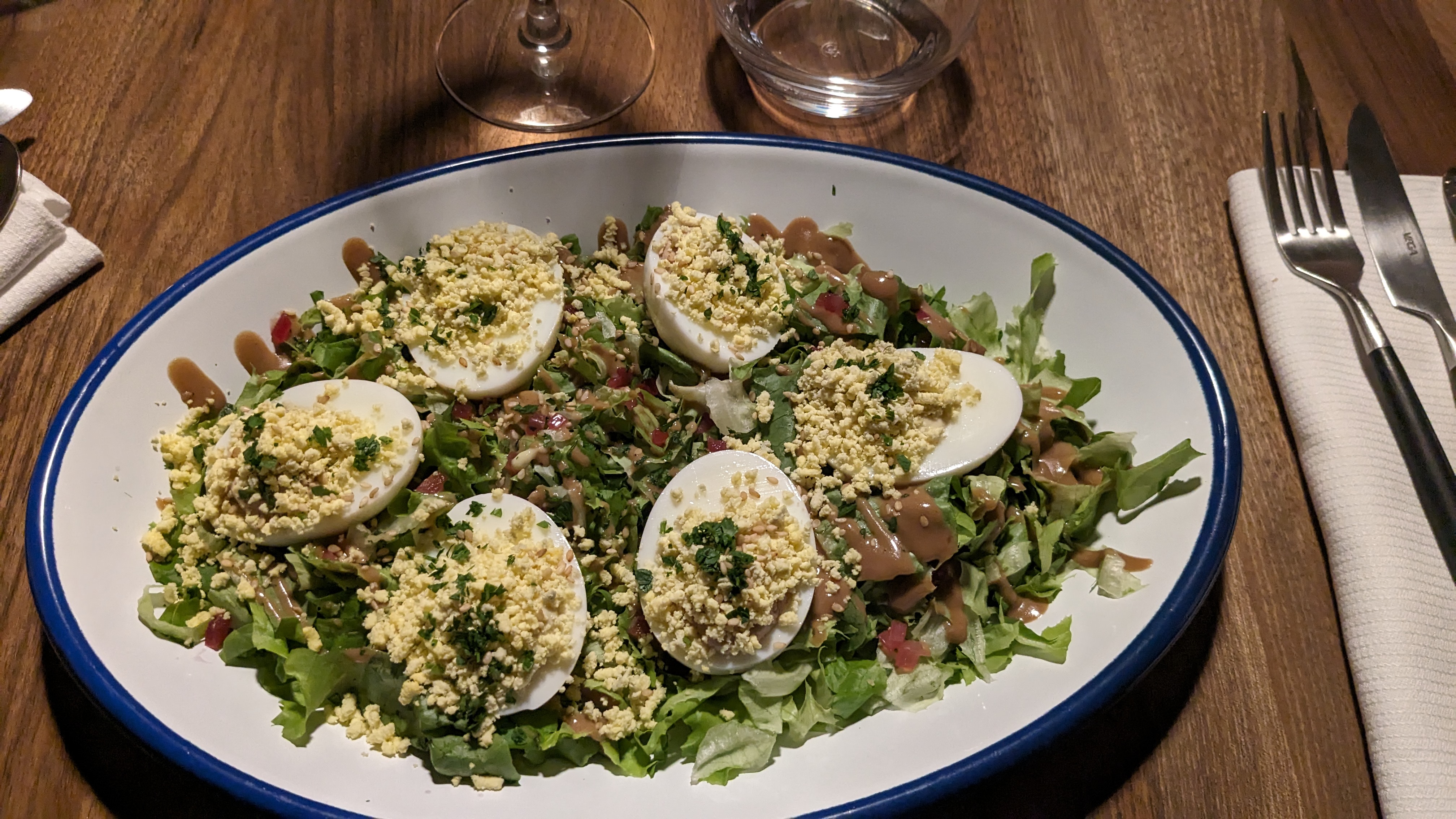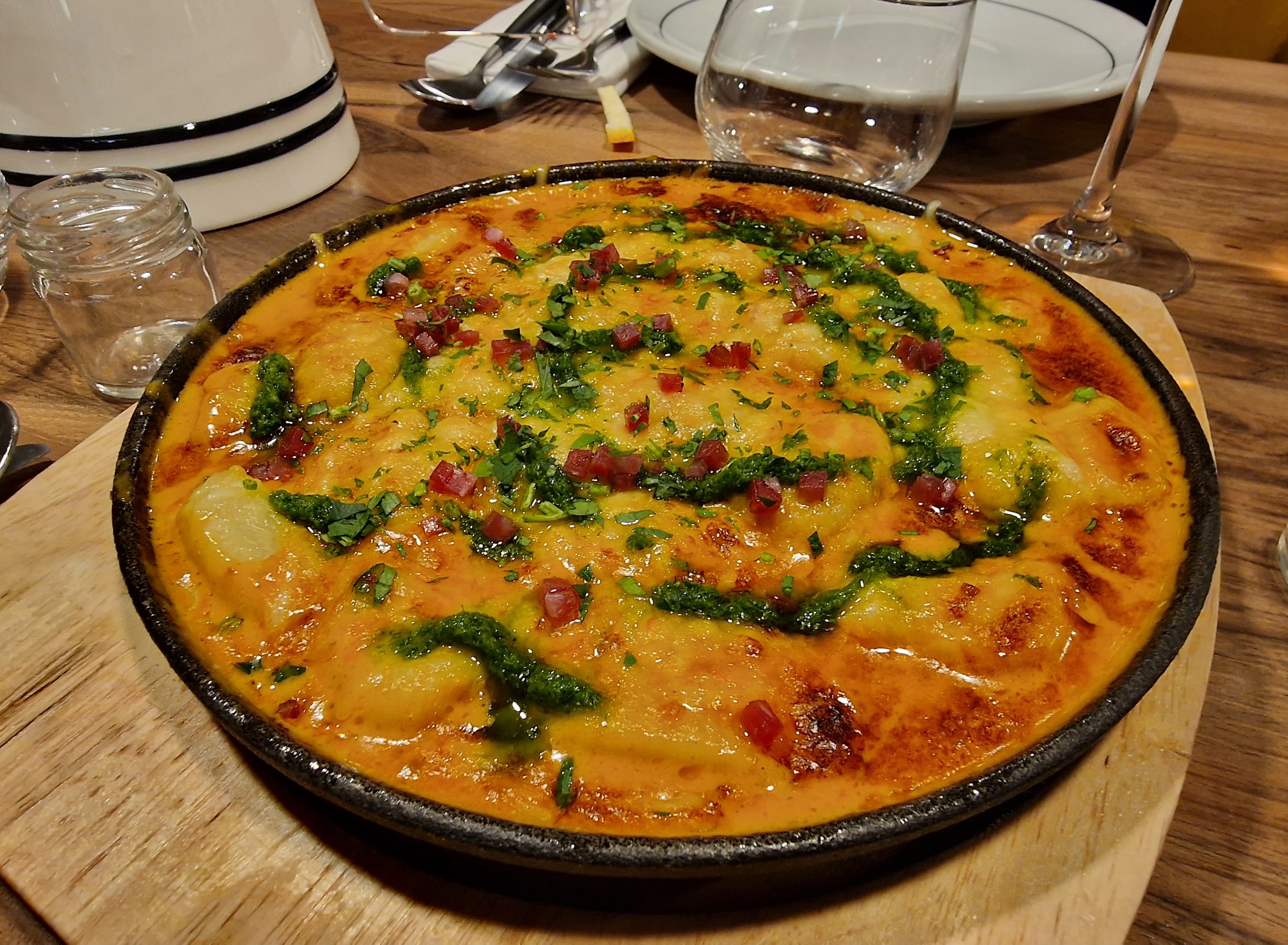 Superbe restaurant, service impeccable, je dirai même très attentionné. Plats excellents, vin délicieux et très bon marché, salle et bâtiment parfaitement rénové. Tout était parfait, on y retournera dès que possible ! Recommandé.