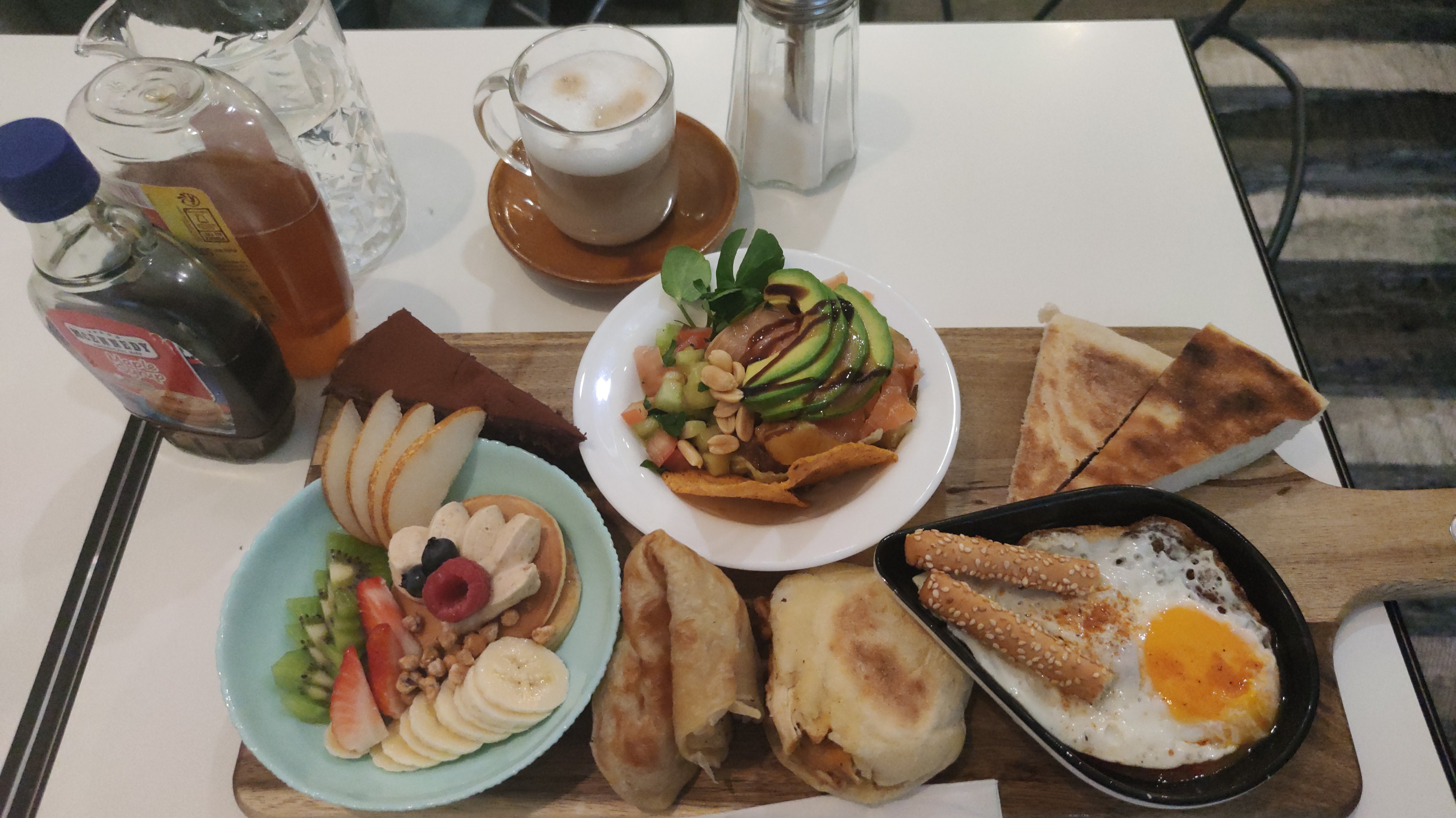 Le brunch est très copieux tant en sale qu en sucré.J ai trouvé le thé à la menthe un peu amer. Problème de langage du serveur parle pas très bien français, prise de commande et servi long.tout est fait à la minute avec produits faits maison.