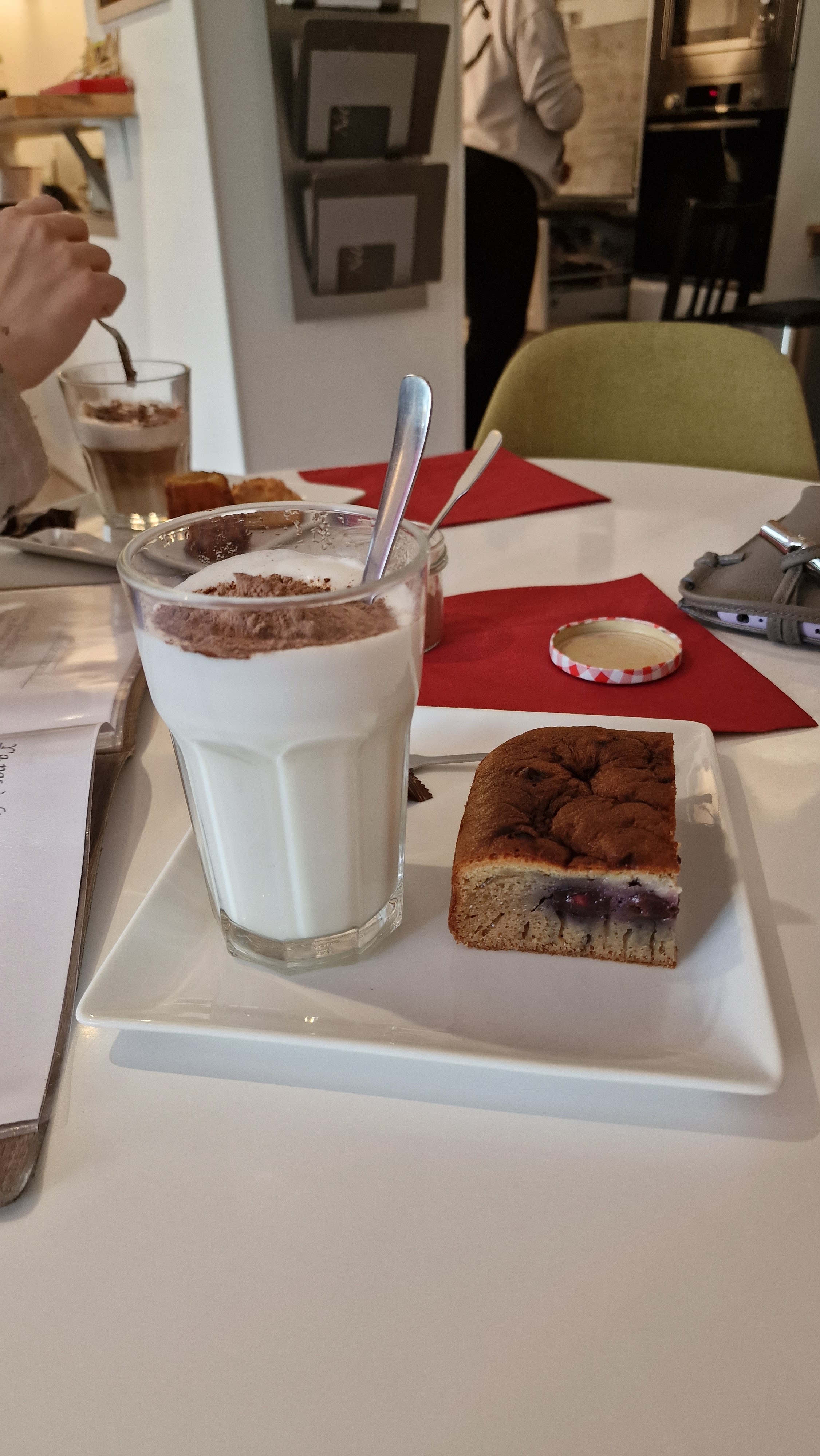De passage pour un petit déj parfait. Gâteaux maison avec de nombreux choix. Café et chocolat chaux perfect. La déco est agréable et on est reçu avec le sourire. Juste pas toujours facile de se garer.