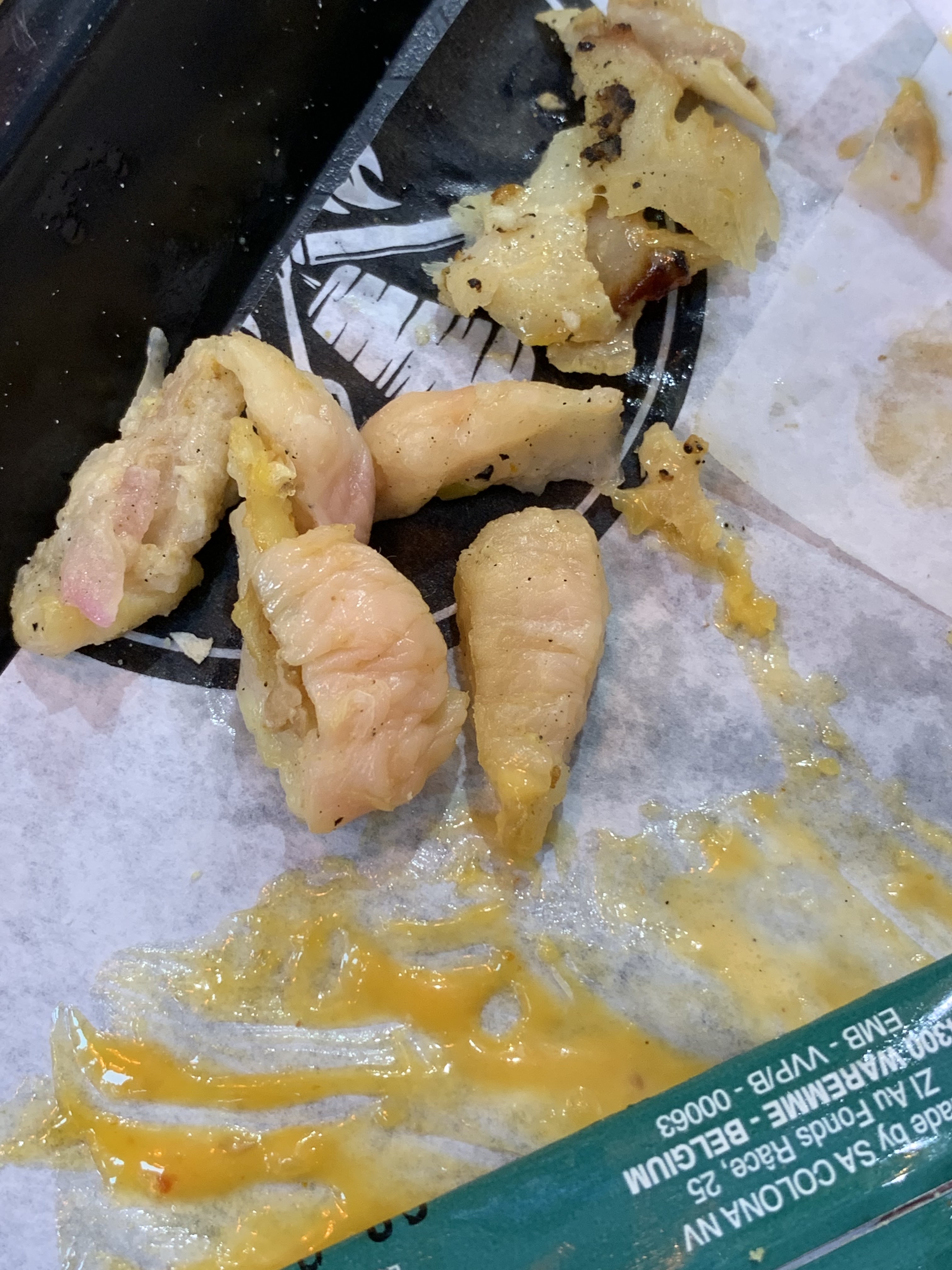 Viande grasse, le riz complètement secs sans goût,frites congelés...