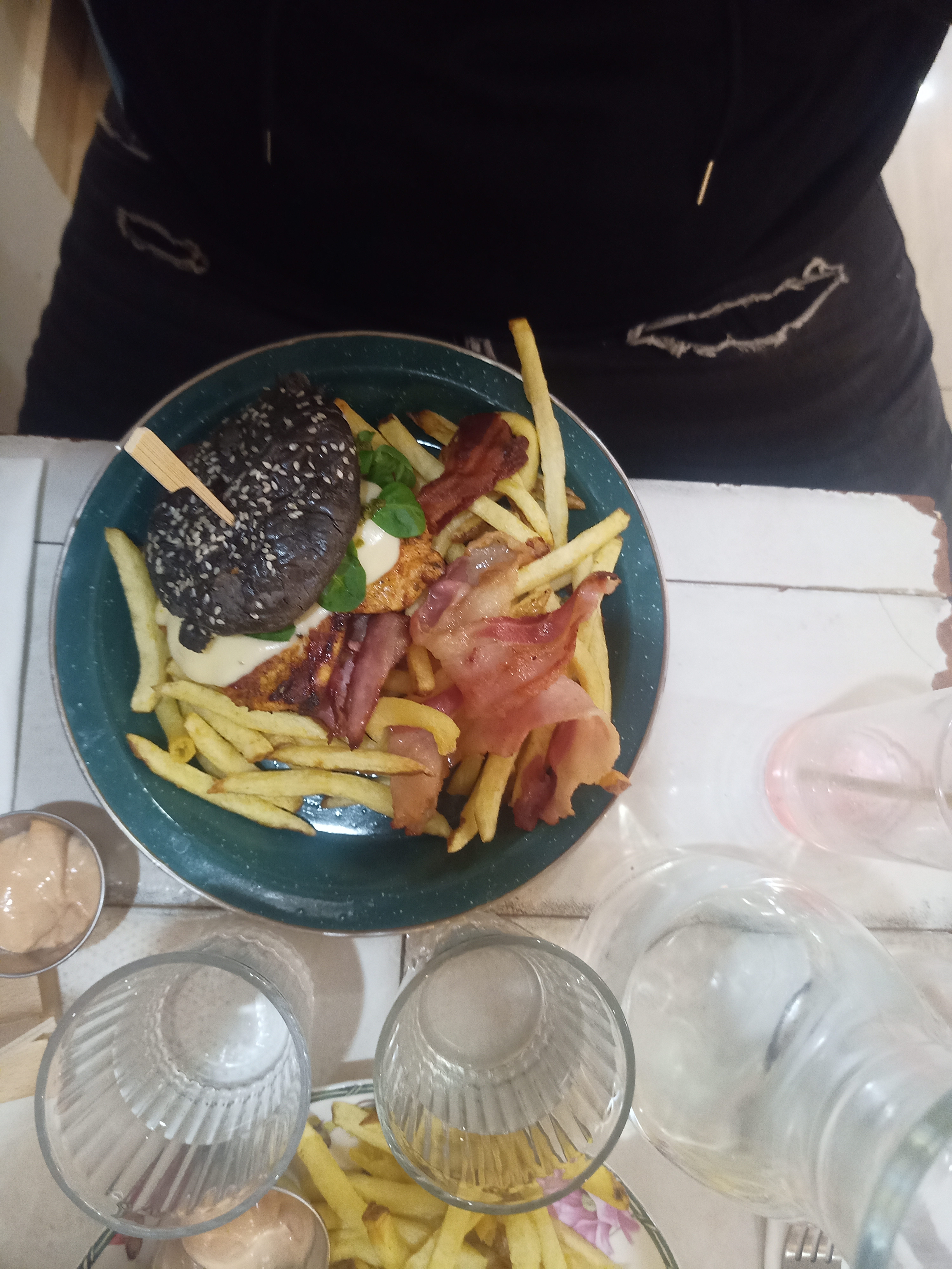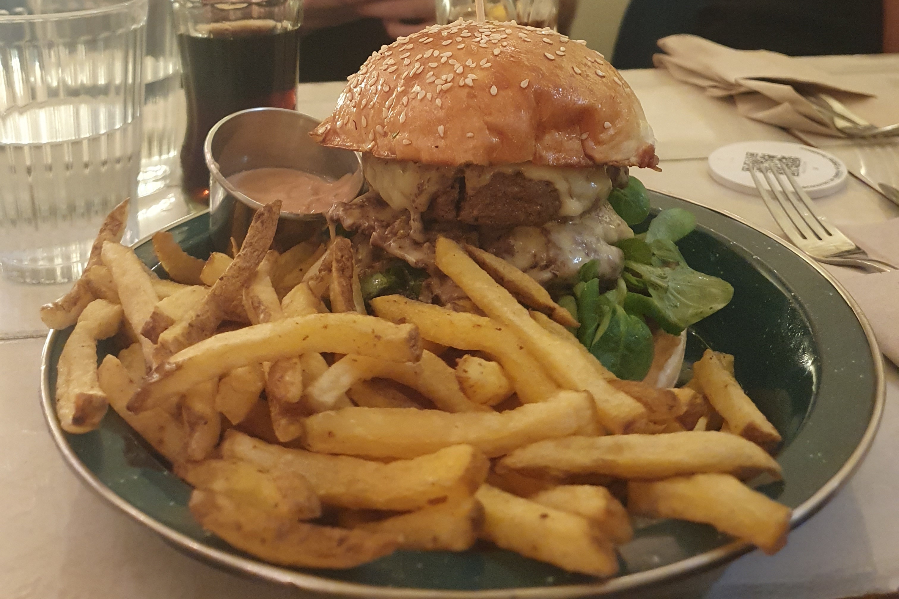 Les burgers sont bons et la portion est correcte par contre les prix sont un peu élevés, les frites n'étant plus incluses avec le burger, il faudra prévoir un peu plus de 15€ pour avoir le menu burger + frites. On était installés côté porte et malheureusement ça grouillait de bestioles ce jour-là.