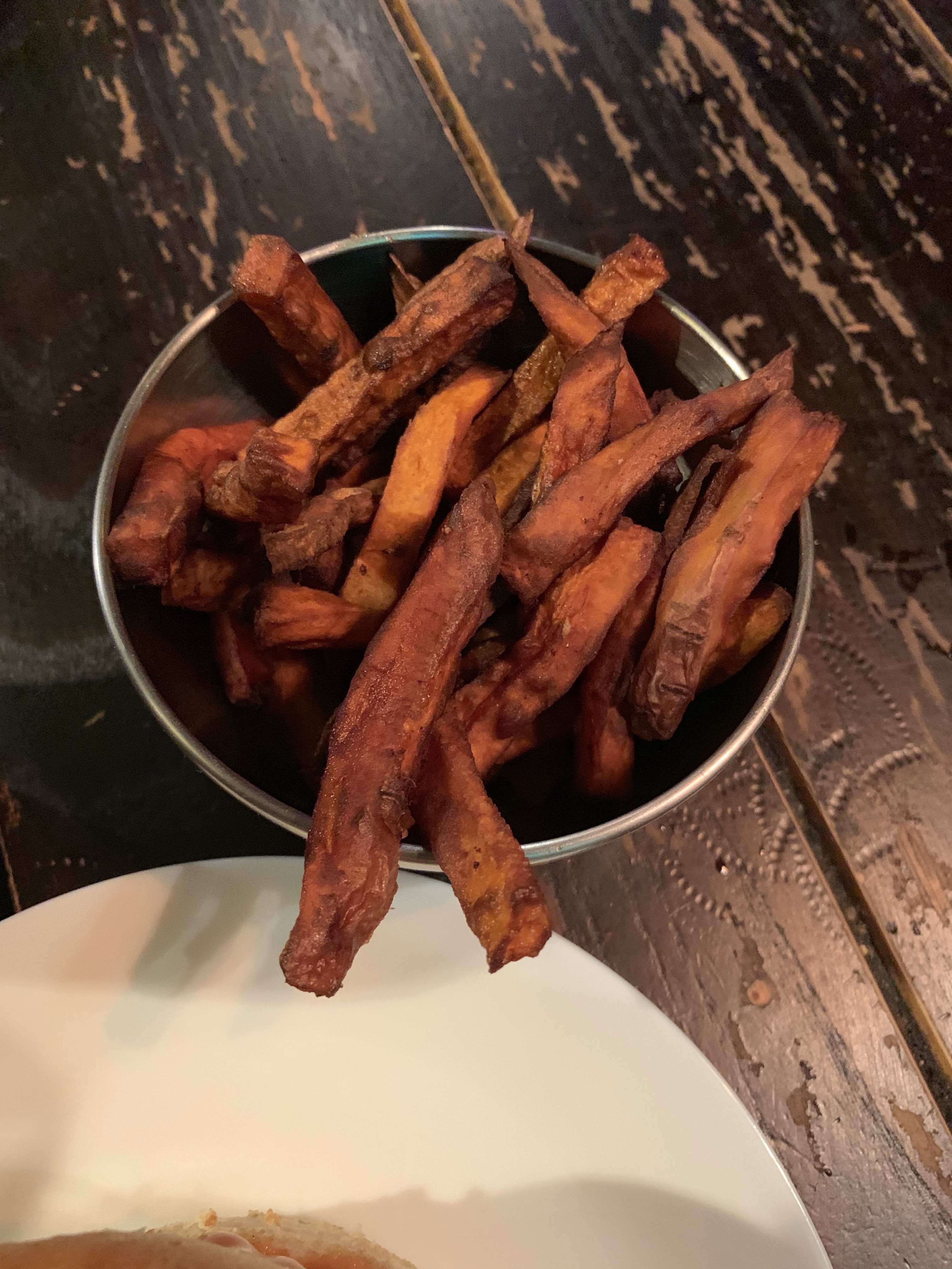 Commande prise rapidement et livrée dans le bar juste à côté où j’étais, donc service top 👍🏻 Cuisson du steak respectée ! Burger savoureux ! PAR CONTRE : les frites de patates douces n’ont visiblement pas été surveillées lors de la cuisson ... Du coup, on a payé 4,5 euros environ pour ... RIEN !
