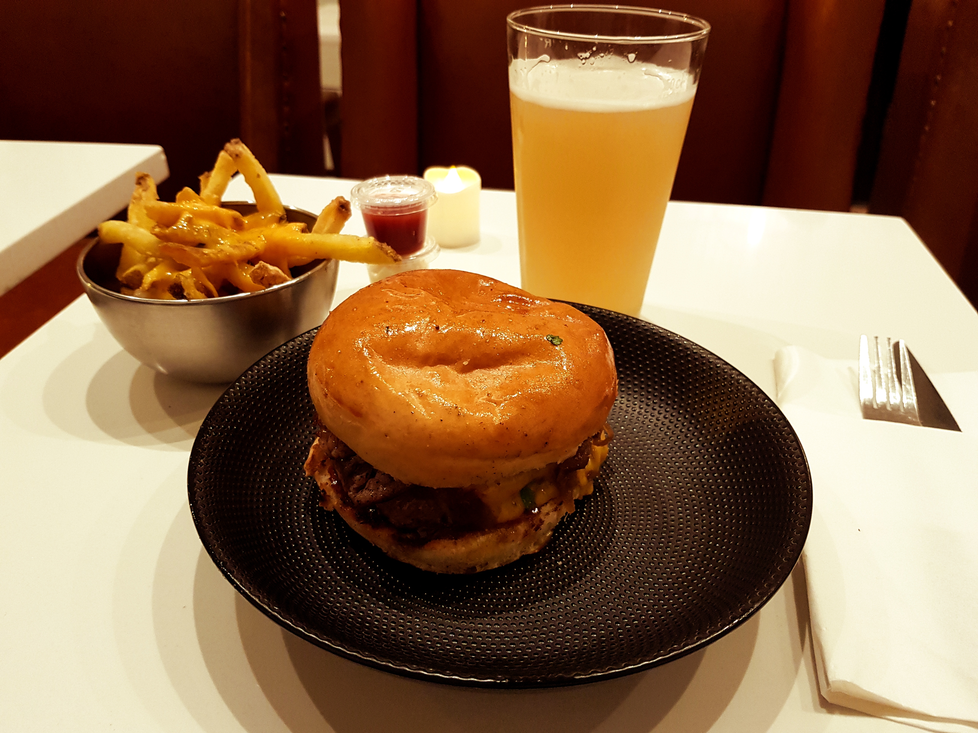 En un mot: excellent ! Service rapide, frites et hamburgers très bien garnis et délicieux, et vendus à prix abordables. En bref, le rapport qualité prix est clairement présent. De plus, le personnel est accueillant et agréable, particulièrement Sarah, la serveuse qui nous a servis ce soir. Nous reviendrons très prochainement et recommandons ce restaurant à l'ambiance cosy et romantique.