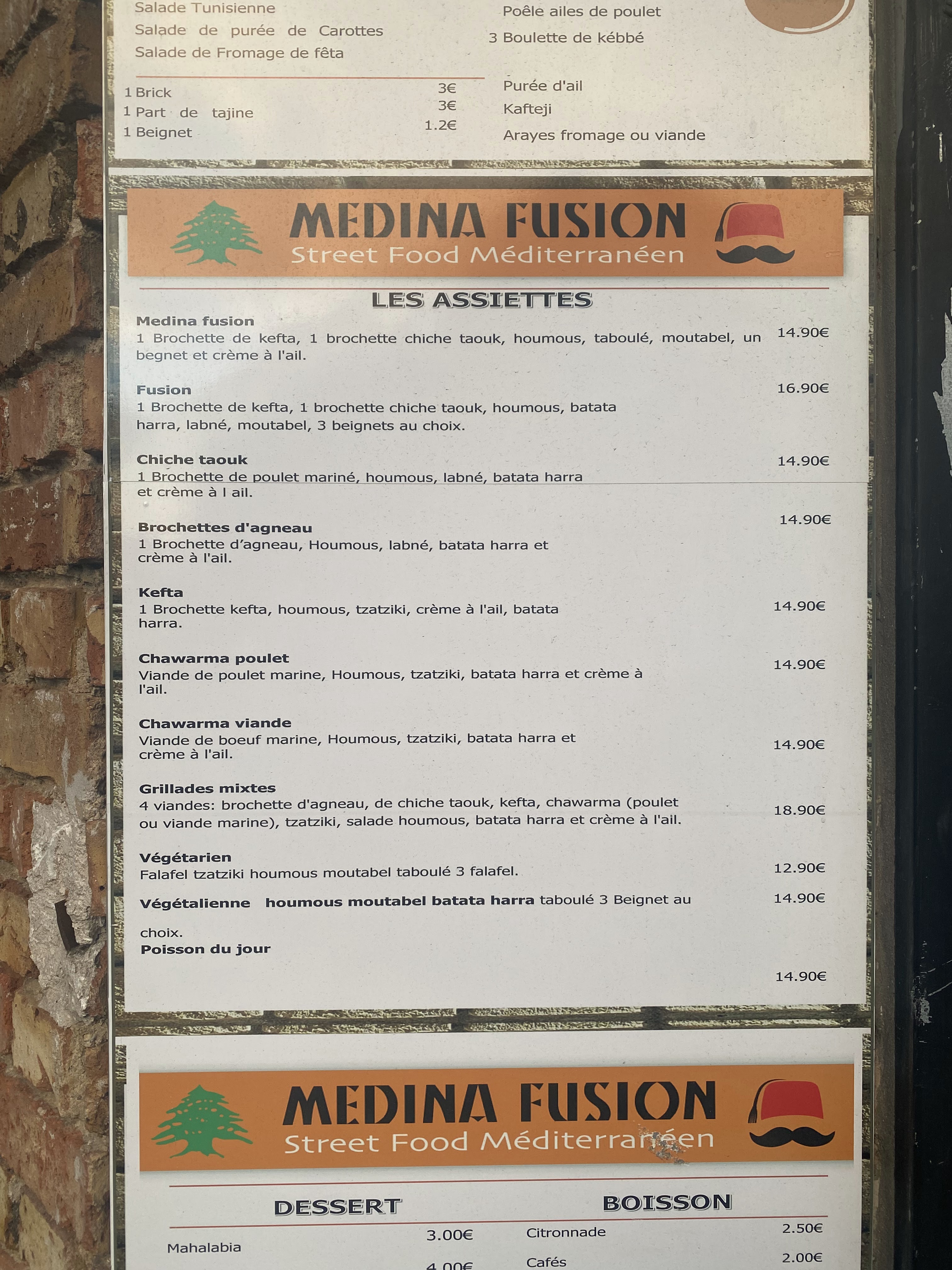 MEDINA FUSION! Nourriture de qualité fait maison excellent service, prix vraiment attractifs! Je recommande fortement, vous ne regretterez pas et vous répéterez sûrement! Personnellement j'adore la cuisine libanaise, tout est délicieux, fait avec de l'amour, le falafel est magnifique ! Je leur souhaite un très bon départ de bon cœur!