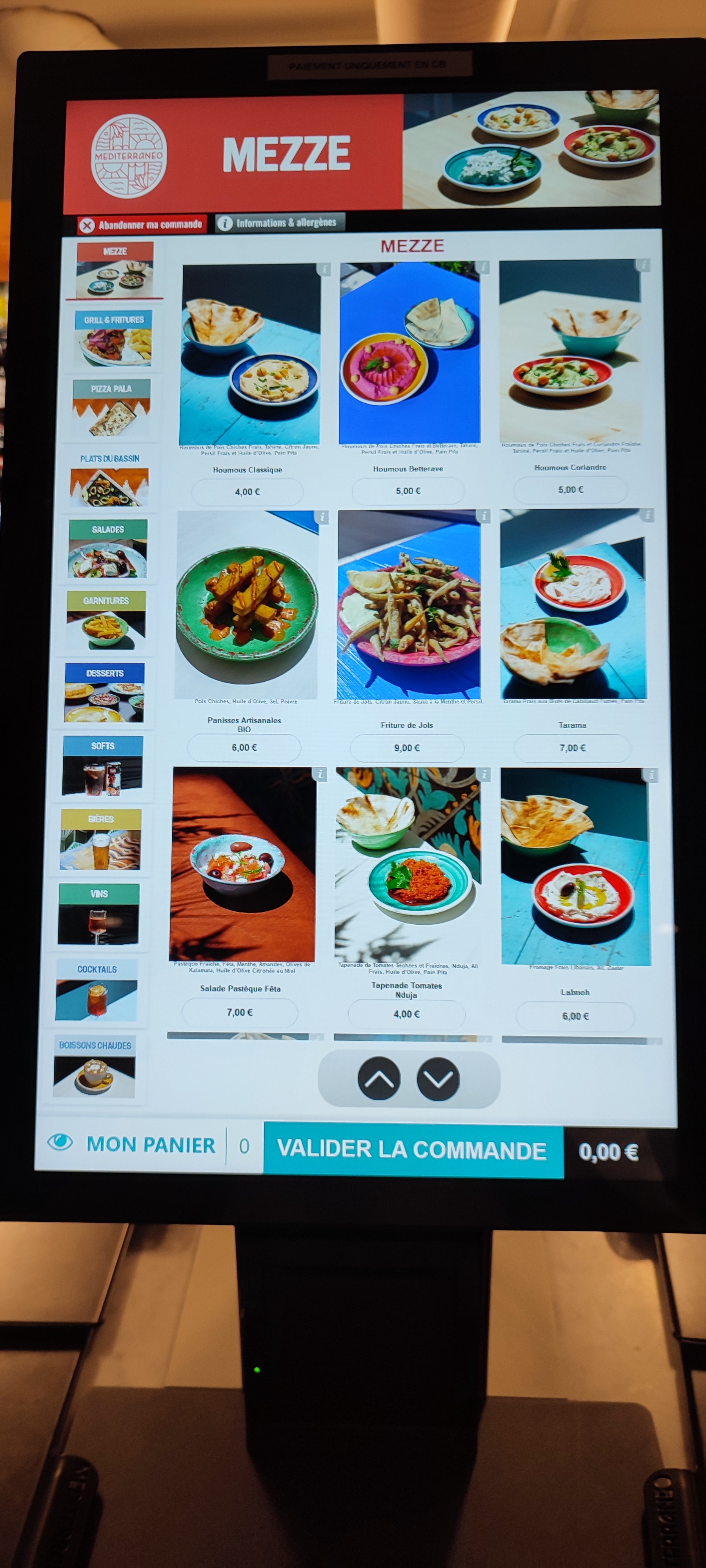 Le déco est super , la musique est top , en revanche la clim est quasiment inexistante et les pulvérisateurs d'eau font que l'atmosphère est super moite . Concernant la cuisine sans grande surprise c'est pas terrible et cher pour la quantité servie . La viande n'était pas assaisonnée et sans réelle saveur sans doute la taille de morceaux qui sont plutôt un émincé ne permet pas de sentir les saveurs. Je pense qu'ont peut trouver mieux au centre ville dans un restaurant méditerranéen. 14 € l'assiette slouvaki agneau et 7 € la crème de poivron. Le concept marketing nous vend une cuisine faite maison , mais ont est plus sur un fast food méditerranéen . Pas mal d'attente pour récupérer les grillades, je trouve curieux que les stands ne reçoivent pas une copie des commandes passées à la borne en cas de forte affluence le temps d'attente va être assez long . Bref une fois la curiosité passée le futur s'annoncera peut être compliqué. Le personnel est adorable et super avenant . Il est curieux de noter que beaucoup de bons avis postés ces dernieres heures par différents profils et dont certains travaillent en tant que franchisé IT TRATORIA ne manquent pas d'éloges sur les différentes entités du groupe IT :) C'est drôle de coïncidence également ,vous avez des personnes qui lorsqu'elles se déplacent en France , vont systématiquement dans un restaurant IT TRATORIA dont les gérants sont aussi ceux de mediteraneo ... Et beaucoup de profils avec 1 seule bonne évaluation celle de mediteraneo comme par hasard avec un timing très rapproché . Visiblement les gérants n'ont pas confiance dans leur concept au point de solliciter des connaissances ? Collaborateurs ? pour rédiger des bons avis type cuisine au top ambiance de dingue , c'est le paradis , c'est franchement pas crédible ! Quel est l'intérêt de poster tous ces faux avis et masquer la réalité, au lieu de se remettre en question !? Chacun se fera son propre avis ...
