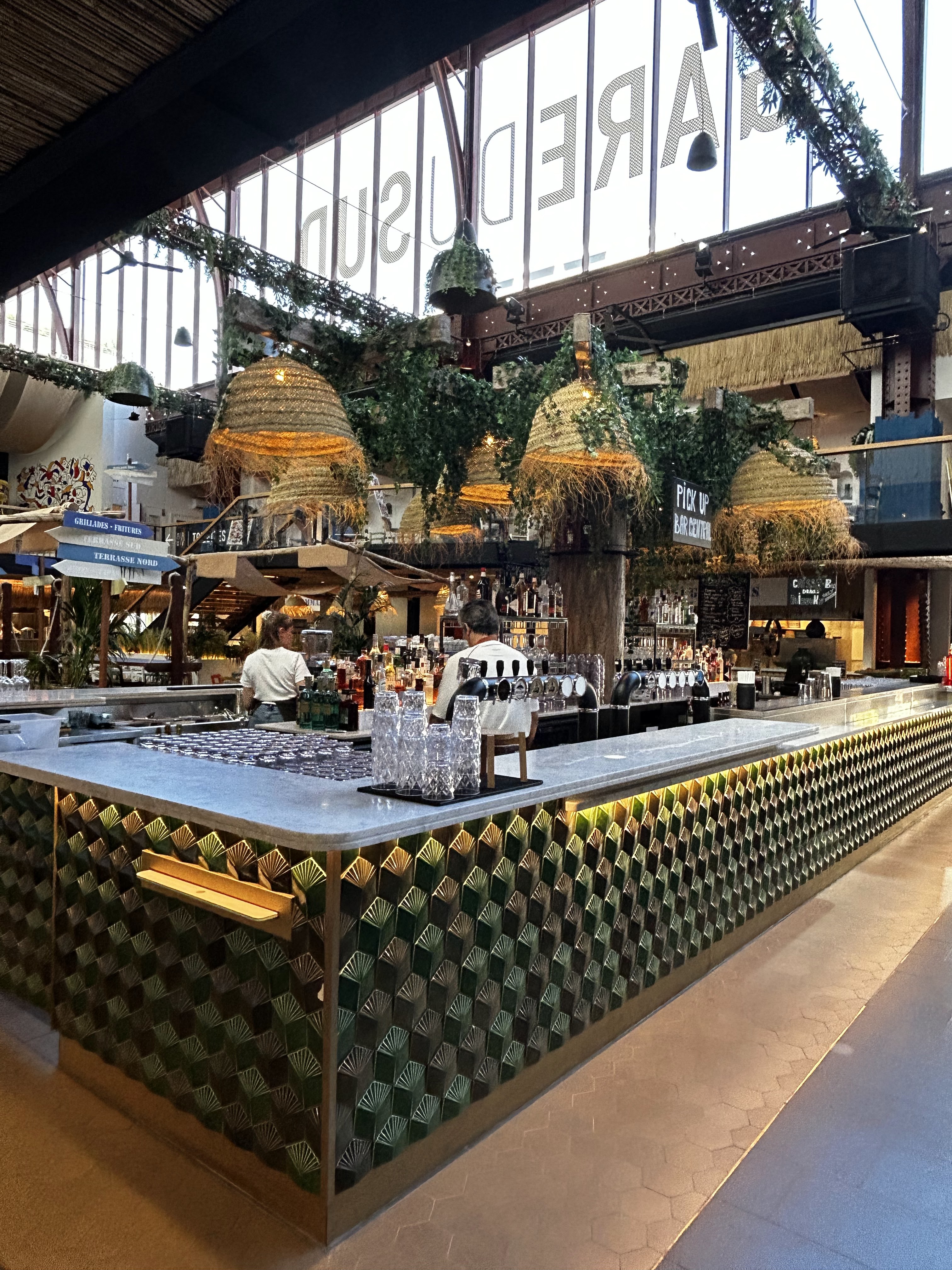 Nous avons mangé dans le restaurant au fond de la halle. Les plats sont très bons, les produits sont frais, l’ambiance est top et la vaisselle est très jolie. Merci aux serveurs Enzo et Victoria, très gentils et souriants, pour cet agréable accueil ☀️ Nous reviendrons avec plaisir !