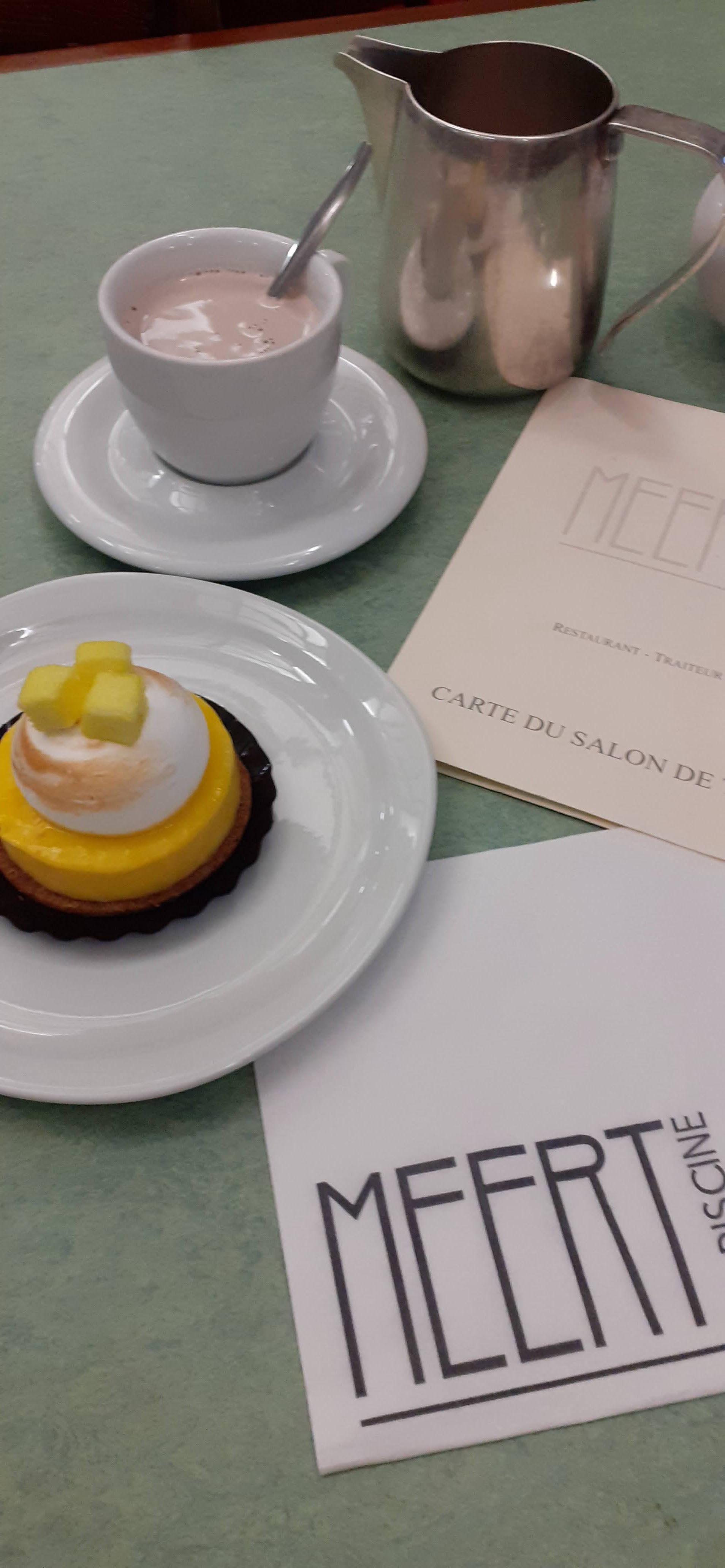 Après avoir visité le beau et original musée de la piscine on s'est arrêté au salon de thé Meert qui se situe dans le décor originel de l'ancienne buvette de la piscine municipale de Roubaix! le bar en acajou et son zinc datent de la cafétéria buvette construite en 1932! comme j'y suis allée plusieurs fois avec différents membres de ma famille j'ai aussi pu tester la grande terrasse qui domine le jardin intérieur! le personnel est gentil et serviable et on a bien le temps de savourer nos consommations! je retournerai certainement me restaurer au salon de thé Meert quand j'aurai encore une fois l'occasion d'aller au musée de la piscine!