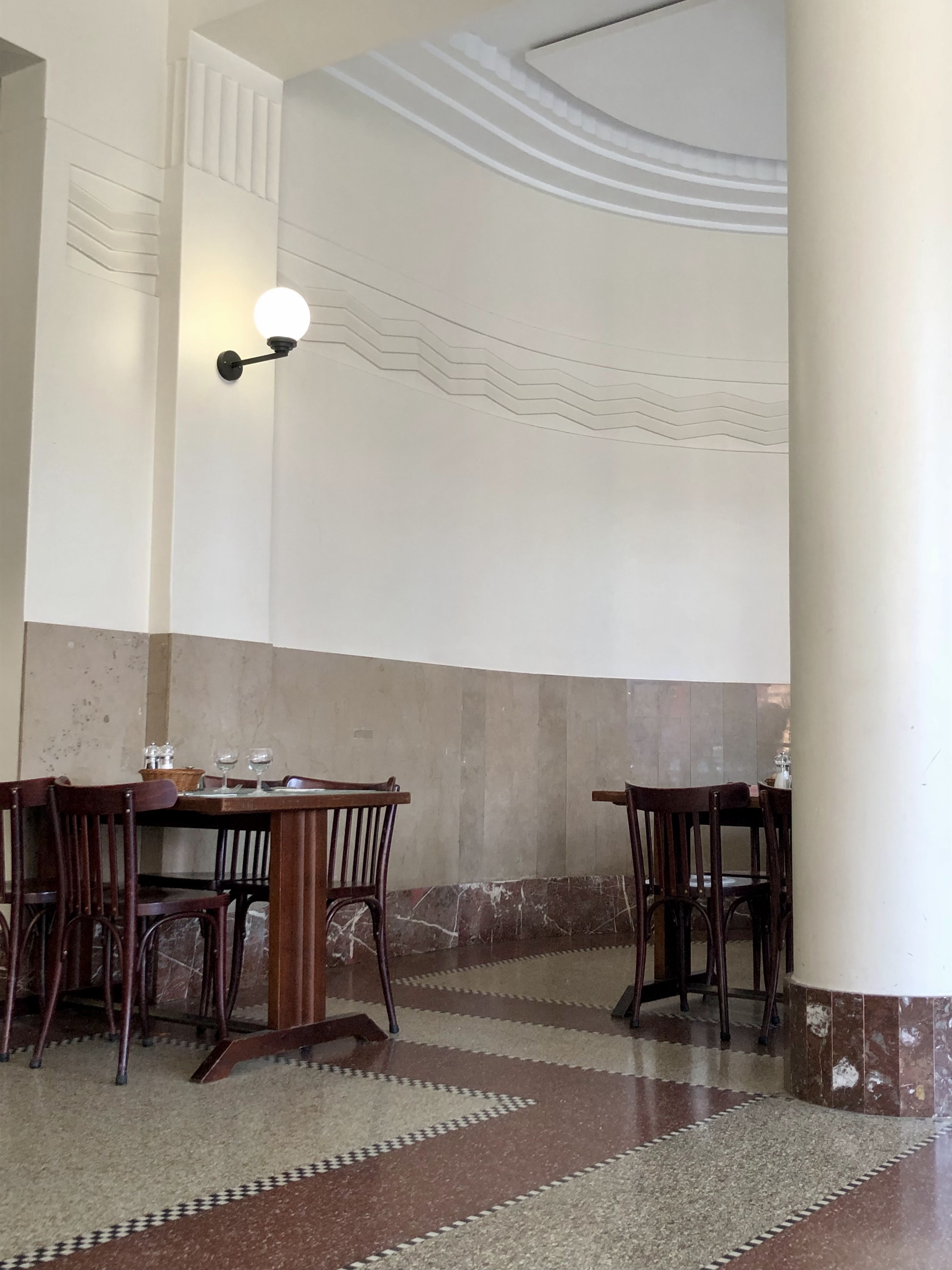 Joli cadre art déco, menu correct à 23,50€, pas mal d'affluence mais personnel efficace et souriant. Heureusement car pas grand chose autour le samedi...
