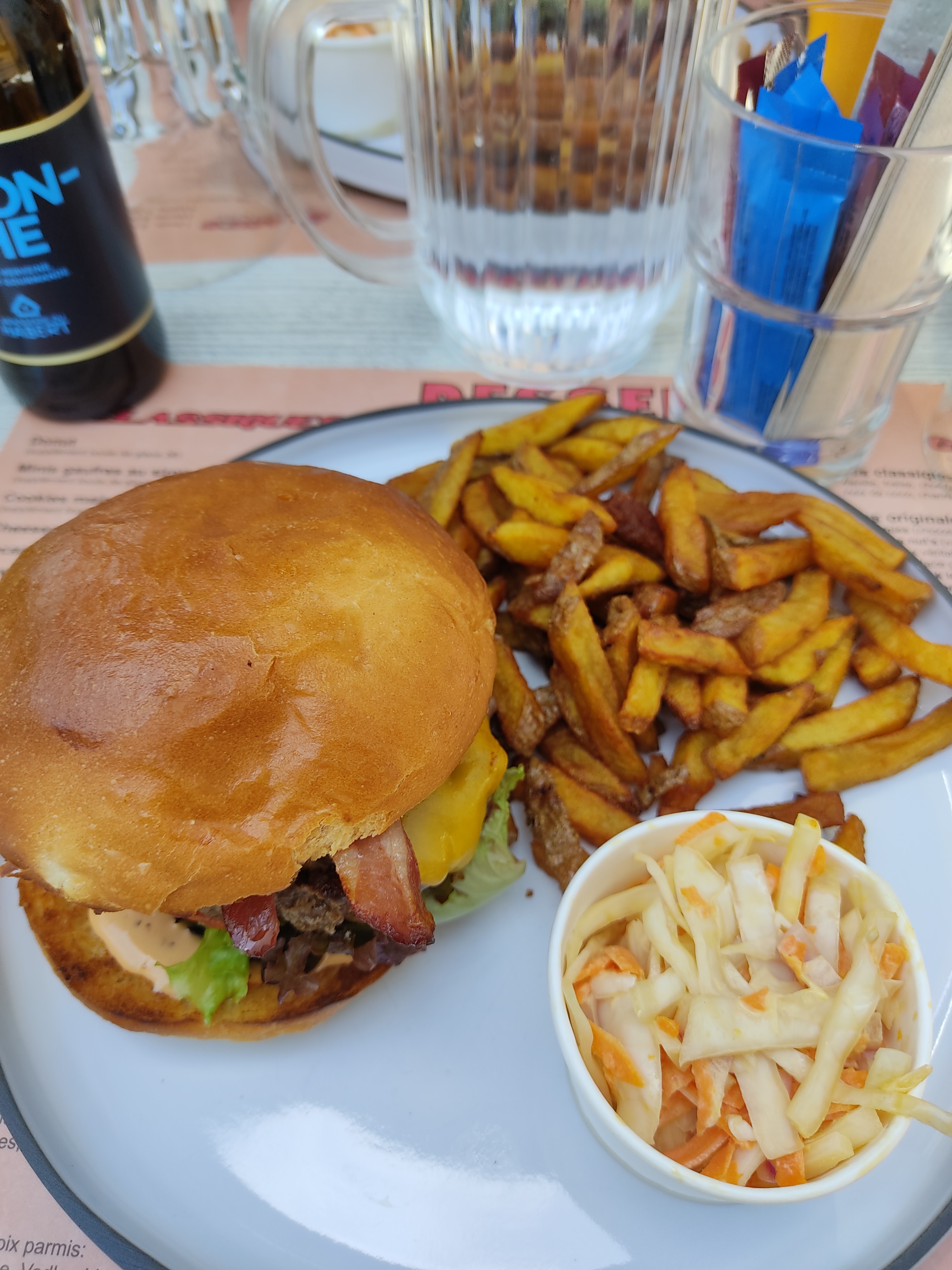Très bon repas. Hamburger de qualité avec un accompagnement délicieux. Très bon accueil ; accepte les petits chiens. Merci pour ce bon moment et félicitations à toute l'équipe.