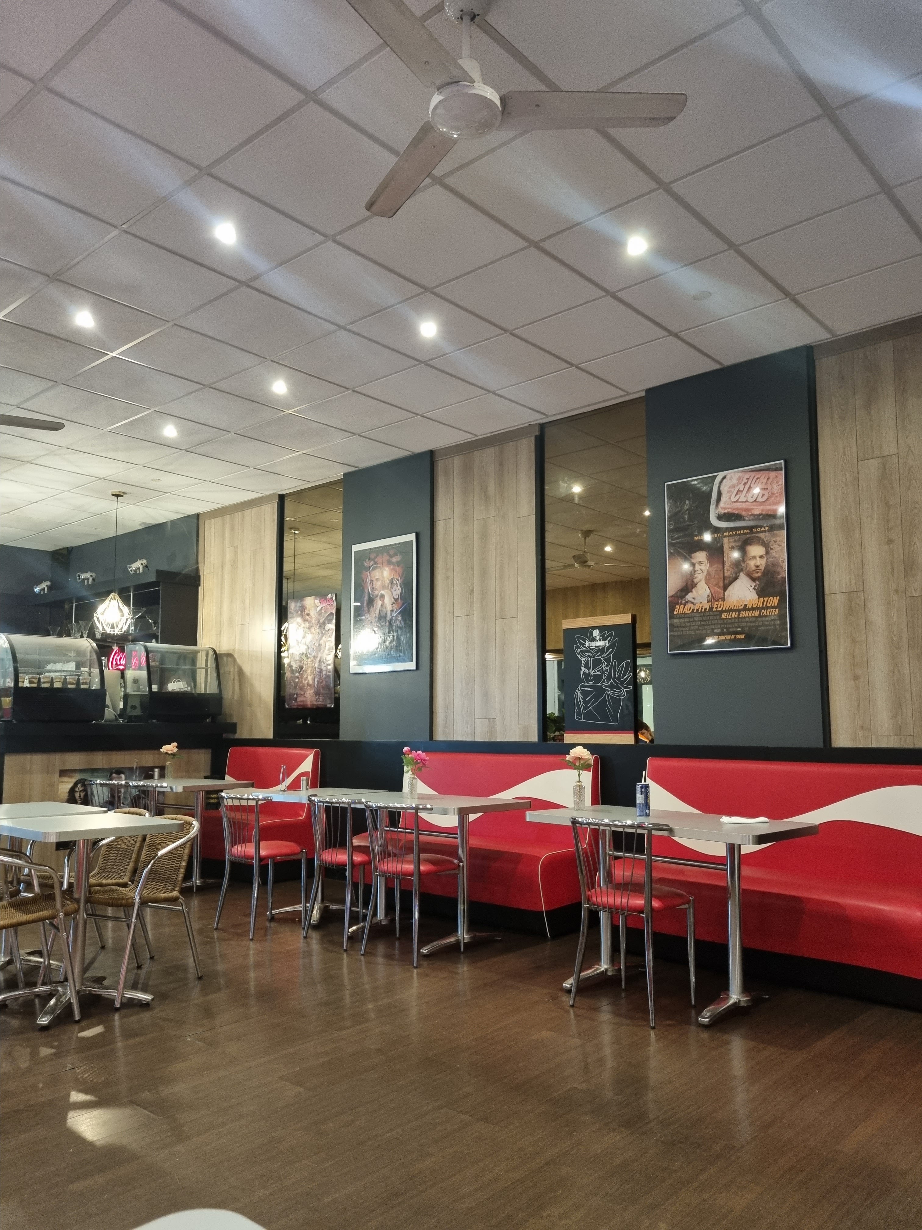 Restauration rapide, pizzas, hamburgers en tout genre, dont du poulet, personnel sympathique et agréable, un peu de difficulté en anglais, mais ce n'est pas un frein. bon appétit