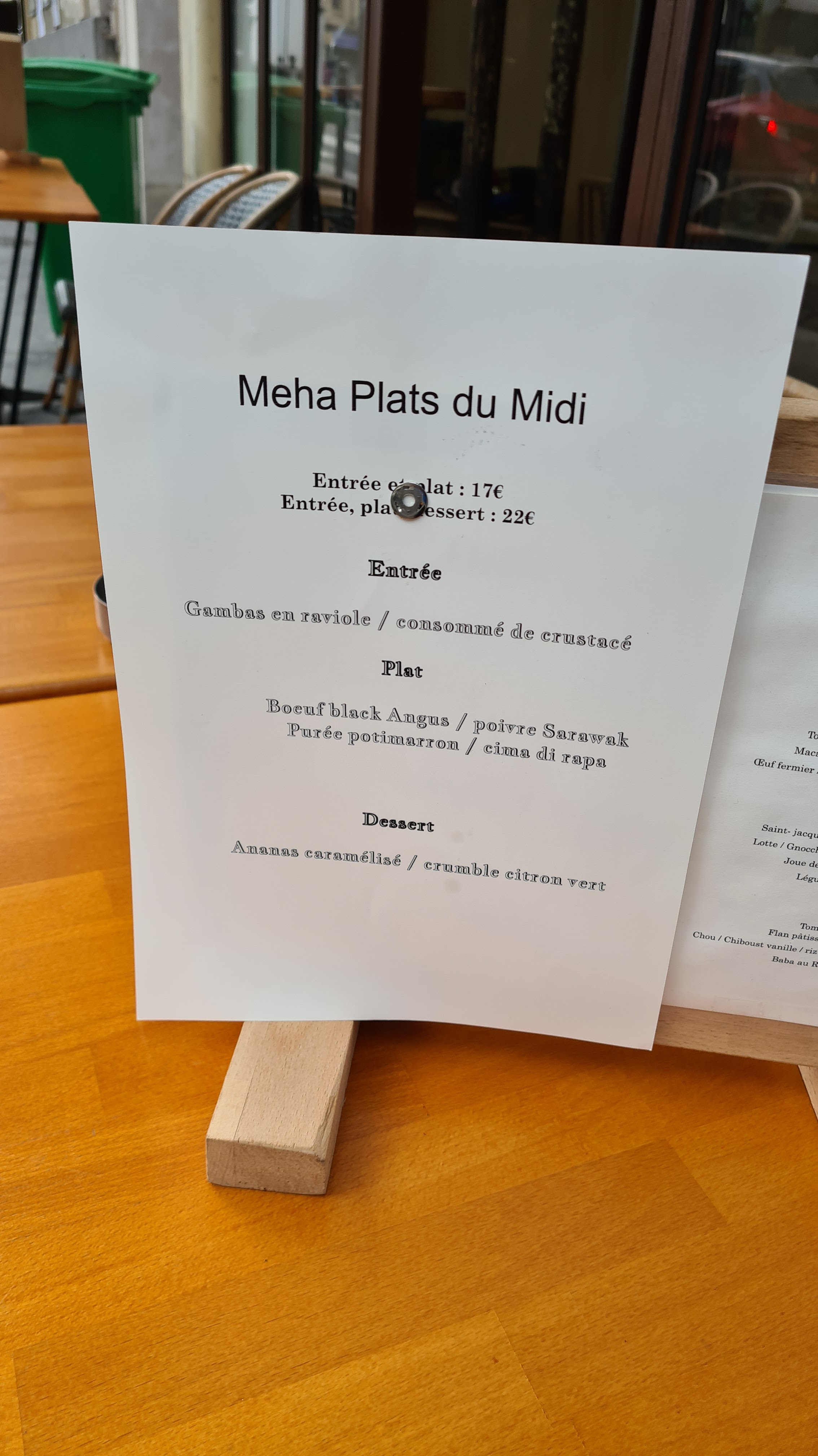 Superbe ! Produits de saison, frais, avec une touche de créativité et de mélanges de saveurs dans les plats, les sauces, et les accompagnements qui fait la différence ! Plats de caractère, cuisson des viandes et poissons au top, on regrette juste qu'il n'y en ait pas plus dans l'assiette tellement on se régale ! Service impeccable d'une efficacité rare, et très bon conseil pour le vin également. Formule midi au rapport/qualité prix imbattable ! Bravo à toute l'équipe du Meha pour cette qualité !