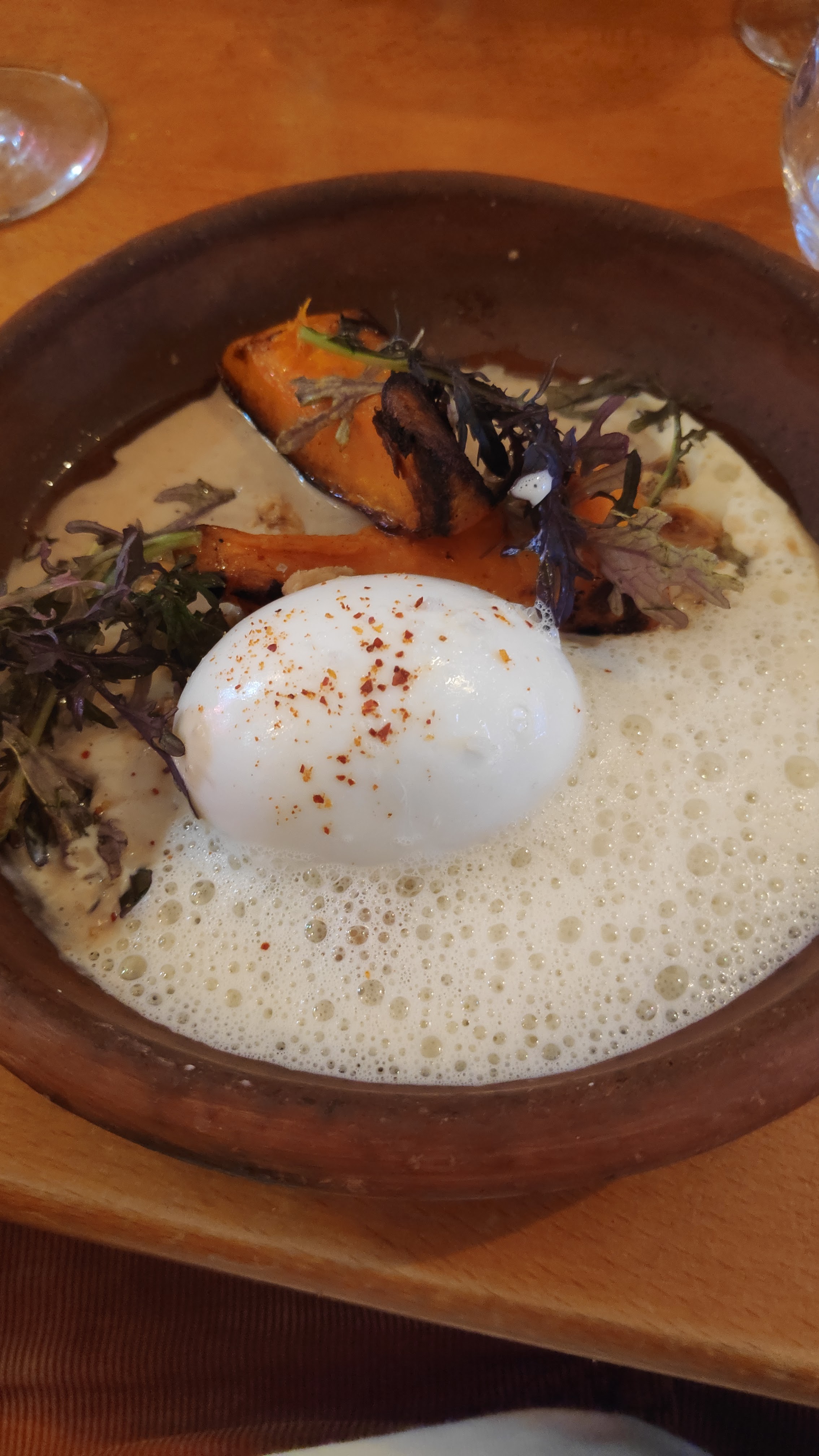 Excellente adresse, avec une carte restreinte comme on les aime, entre 2 et 3 choix par catégorie. Des plats originaux, vraiment maîtrisés, avec des mariages excellents comme l'oeuf parfait potiron. Les serveurs sont très sympas, on se sent à l'aise rapidement, le conseil du vin était parfait. Je reviendrai !