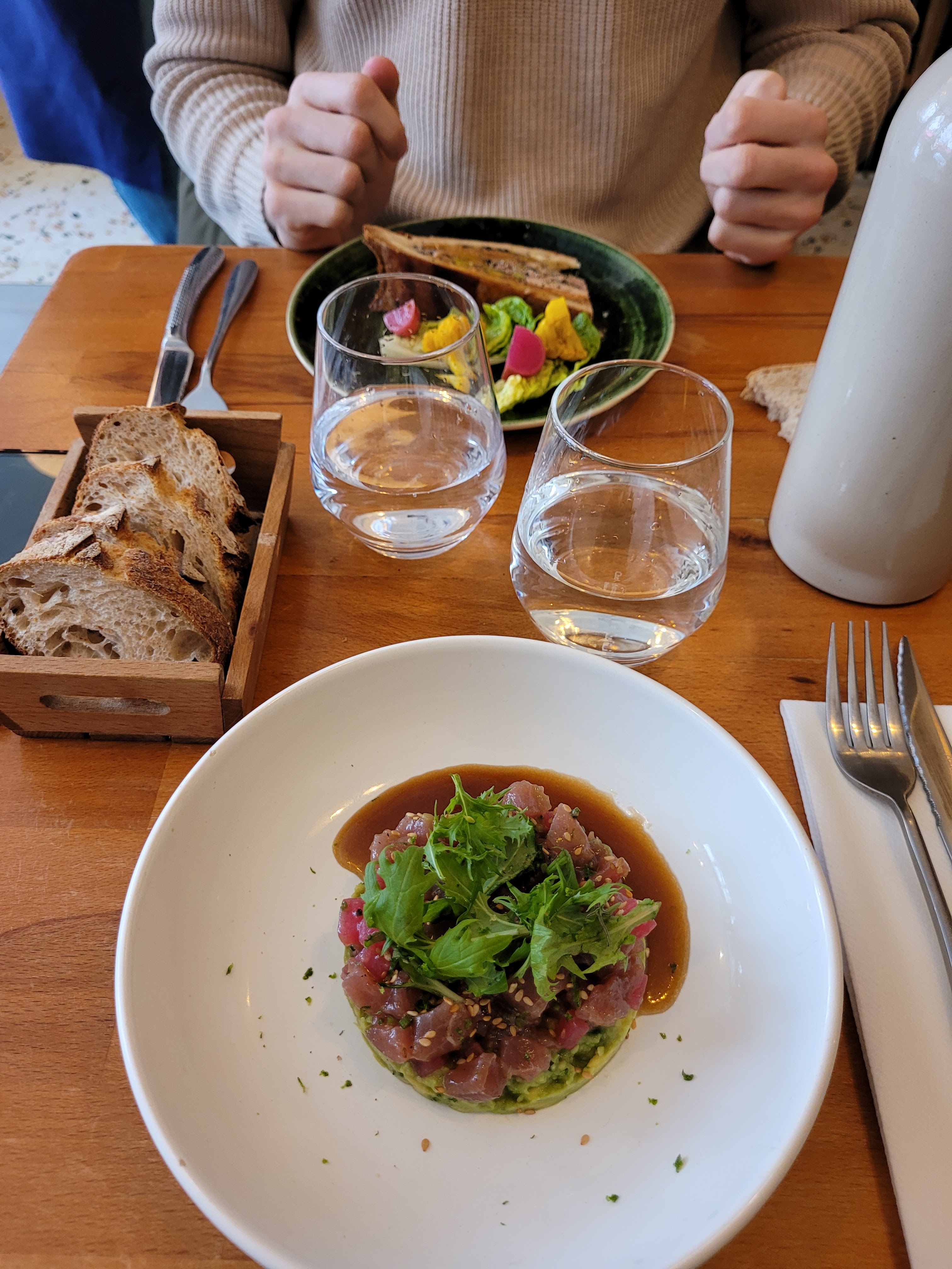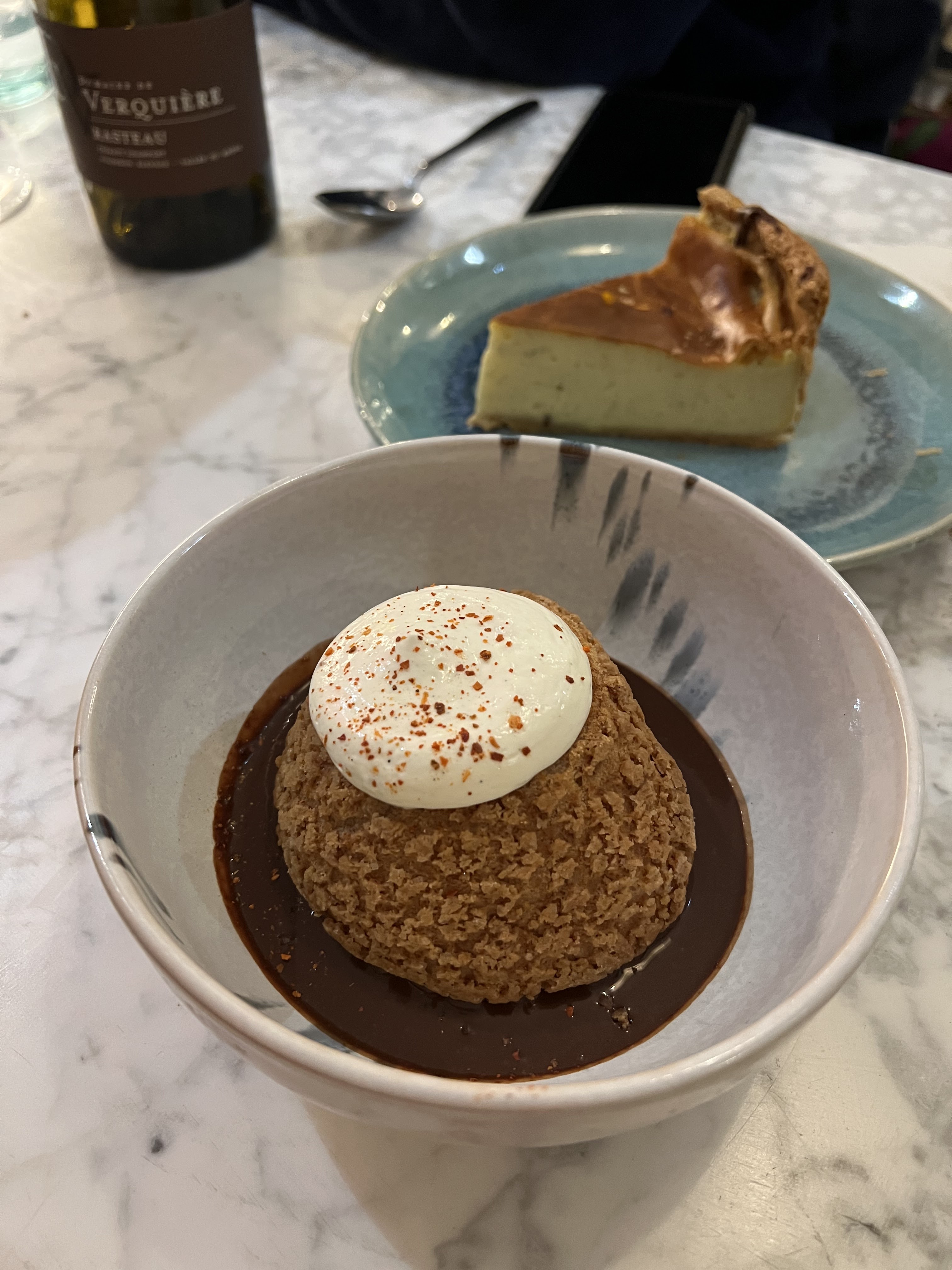 Un repas en amoureux dans un endroit sympa à la décoration raffinée et aux plats hyper quali ! Je recommande les yeux fermés. Les bouteilles sont assez chères mais les verres (6€) sont bien servis et les vins proposés très bons. C’est un sans faute 🫶