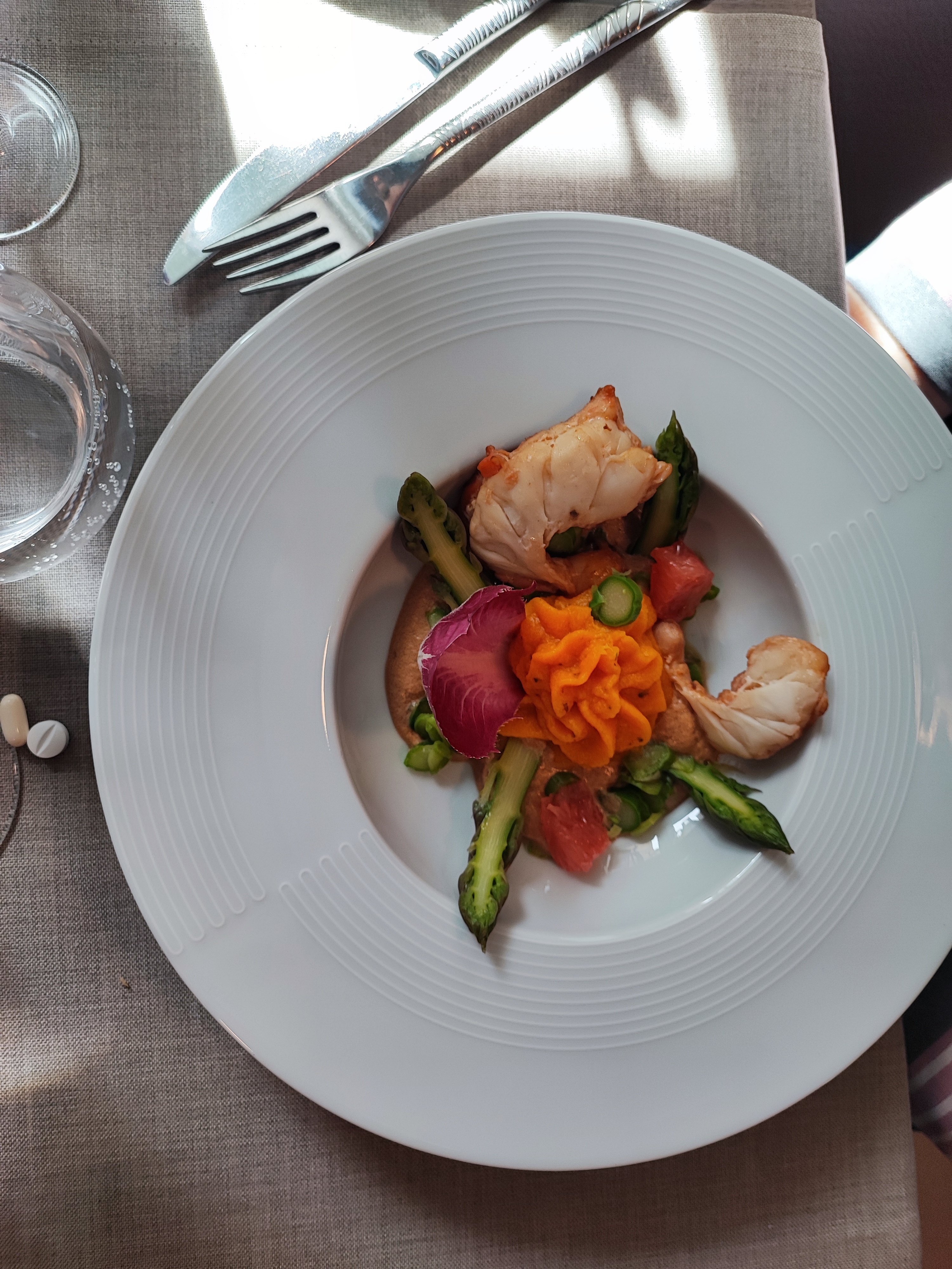 Très bon restaurant l'entrée crevettes petits légumes mozzarella mais j'ai trouvé que la sauce à base d'ananas tuait un peu le goût des crevettes, mais c'est un goût personnel Le poisson et ses légumes sur soupe de poisson excellente ,et super dessert Tout cela avec un accueil et un service vraiment des plus agréables