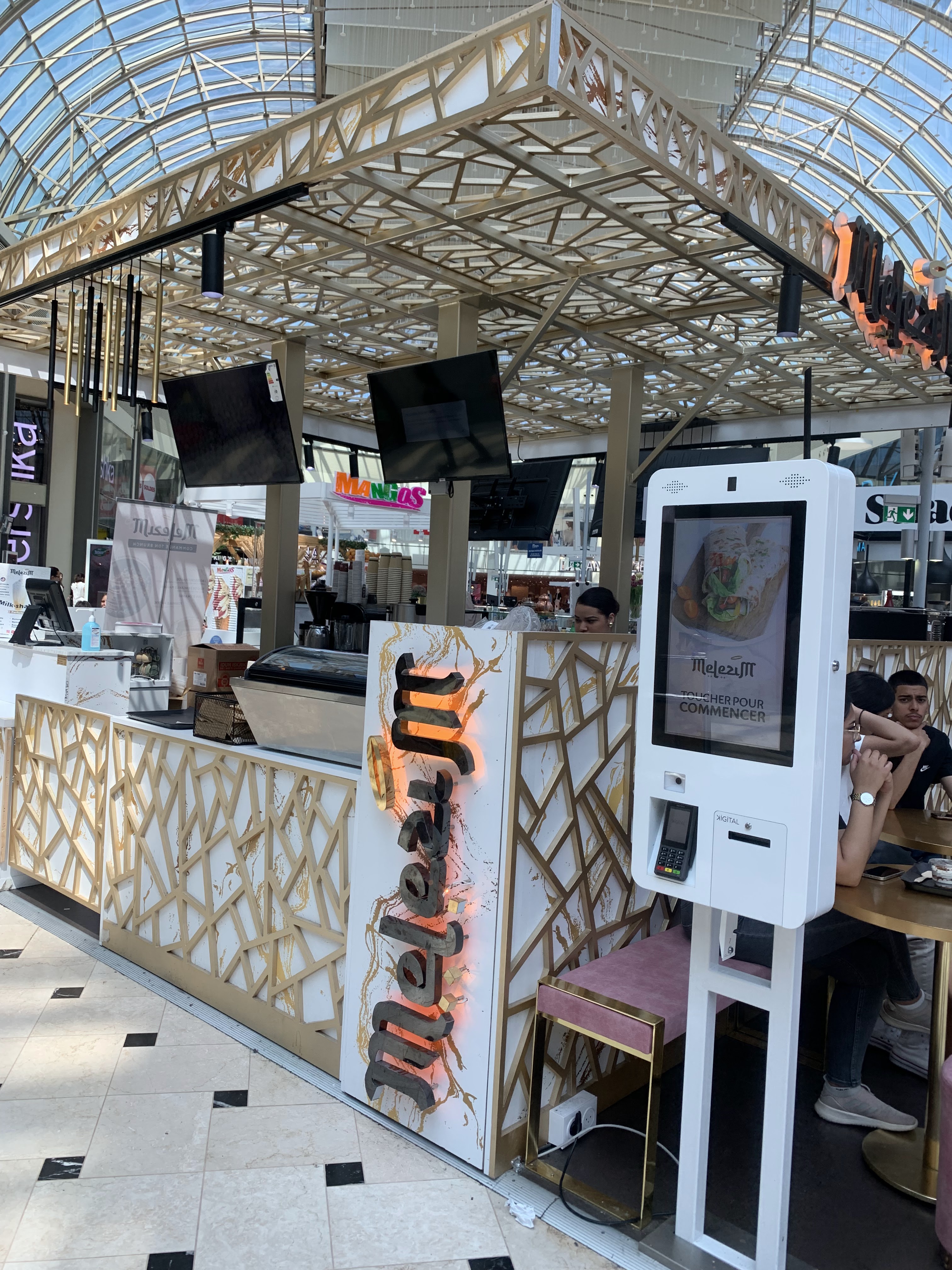 Si vous passez par le centre commercial Val d'Europe , je vous conseil tres fortement de faire un petit arret au magnifique stand Melezim. J'y suis allé 2 fois, l'accueil était vraiment très chaleureux, le personnel très souriant. Pour ce qui est de la nourriture, il y a un large choix possibles, dont des formules , des spécialités ( wraps, burgers...), des desserts , milkshakes... Je conseille vivement 👌