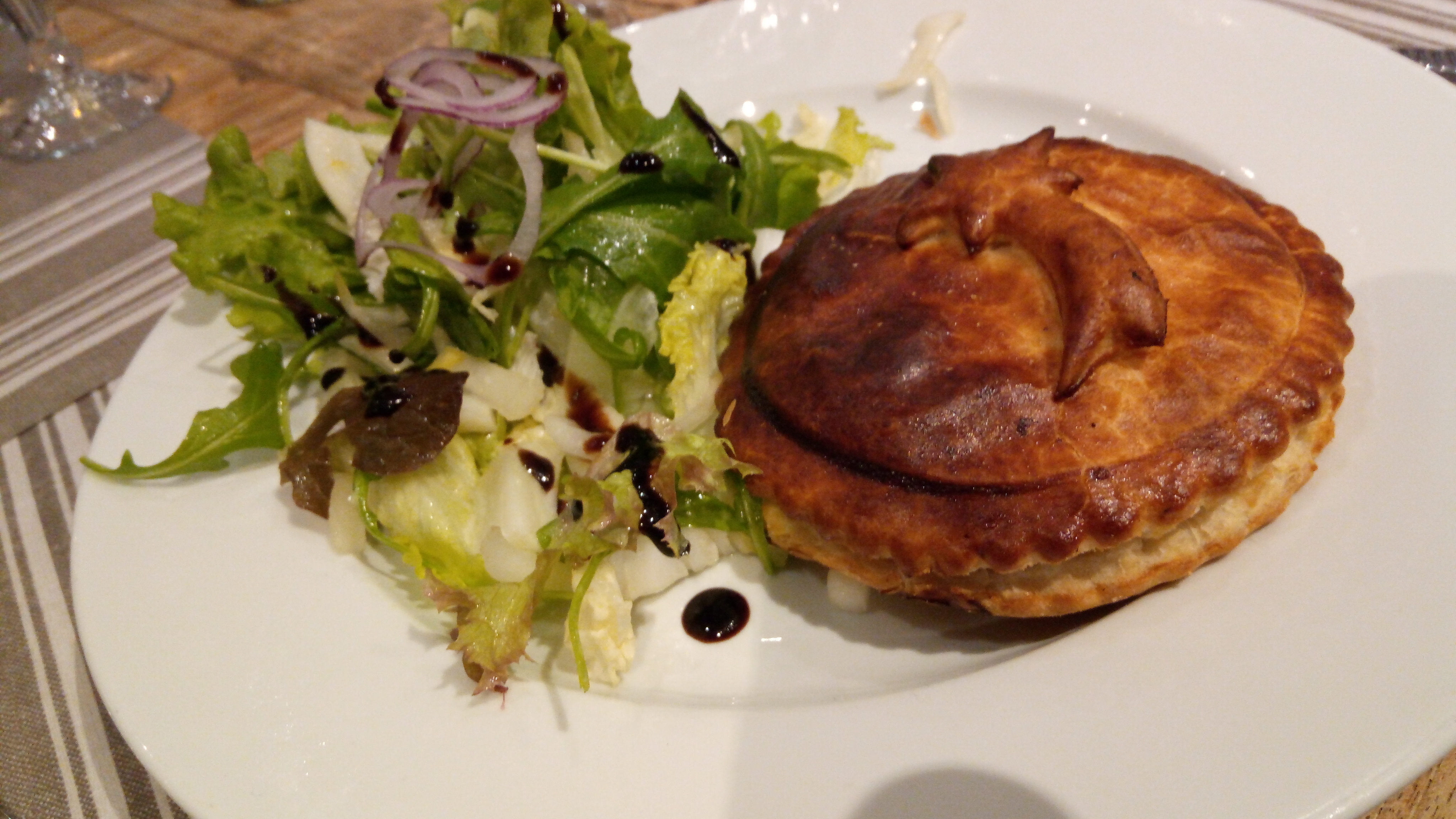 Un restaurant un peut isolé(pas dans le centre ville), mais la déco intérieur est charmante,bien éclairé.la salle est grande mais un peut ébruitent quand il y a du monde. Le plat d'entre est super bon .Le menu est bien grani même si je suis venu avec un groupe et j'ai pas choisi mon menu.j'ai attendu 1h avant de langer mais je c'est pas a qu'elle H le repas devait être service donc peutre normale. La déco des plat servi est super bien faite regarde les photo mis par moi en ligne.