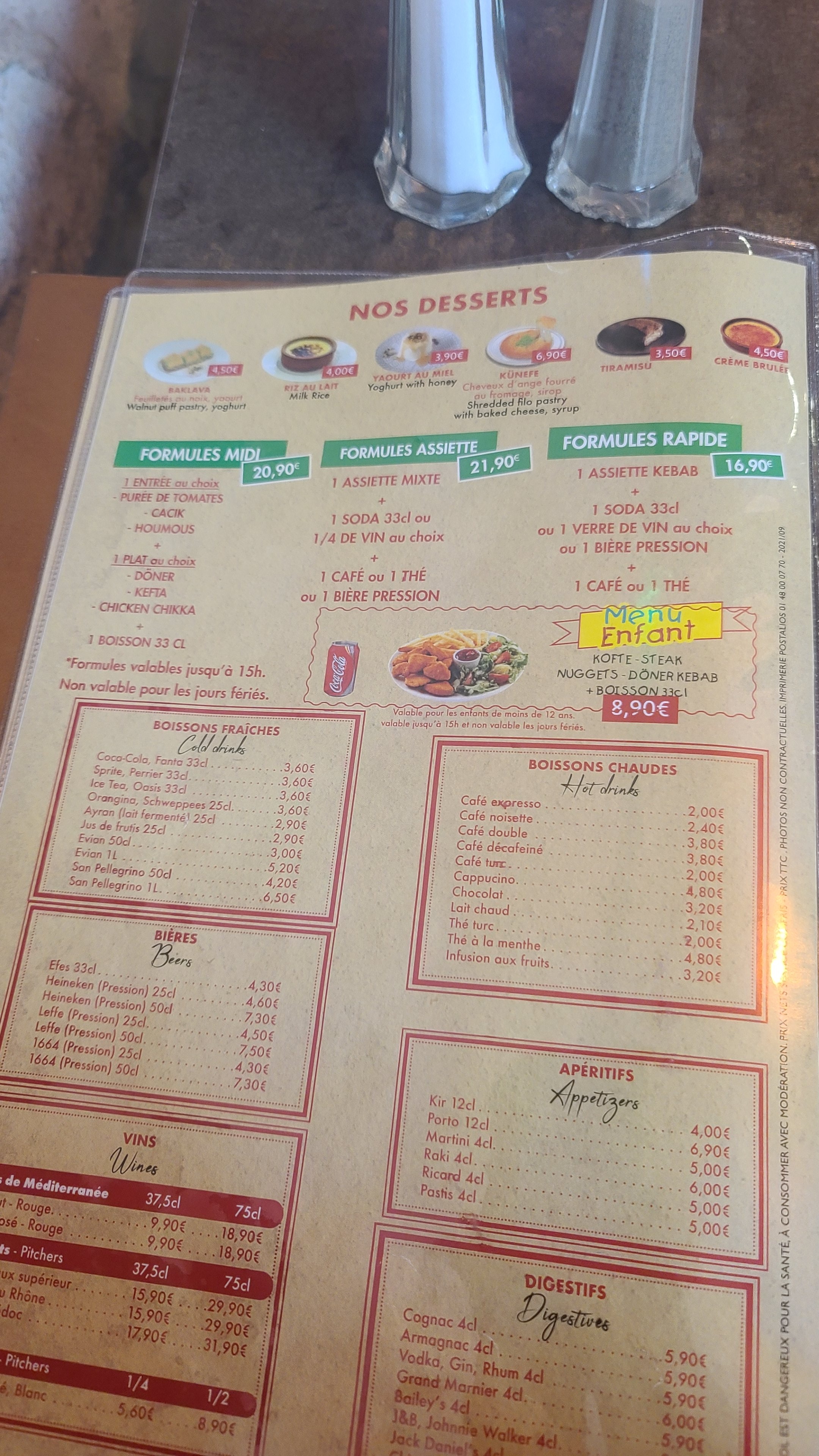 Je n'y mange qu'au restaurant et non pas en kebab à emporter. J'adore y prendre une assiette Adana, ce n'est pas très cher, complet et la viande est cuite au feu de bois. Ce n'est pas de la grande cuisine, mais j'en suis satisfait à chaque fois que j'y vais.