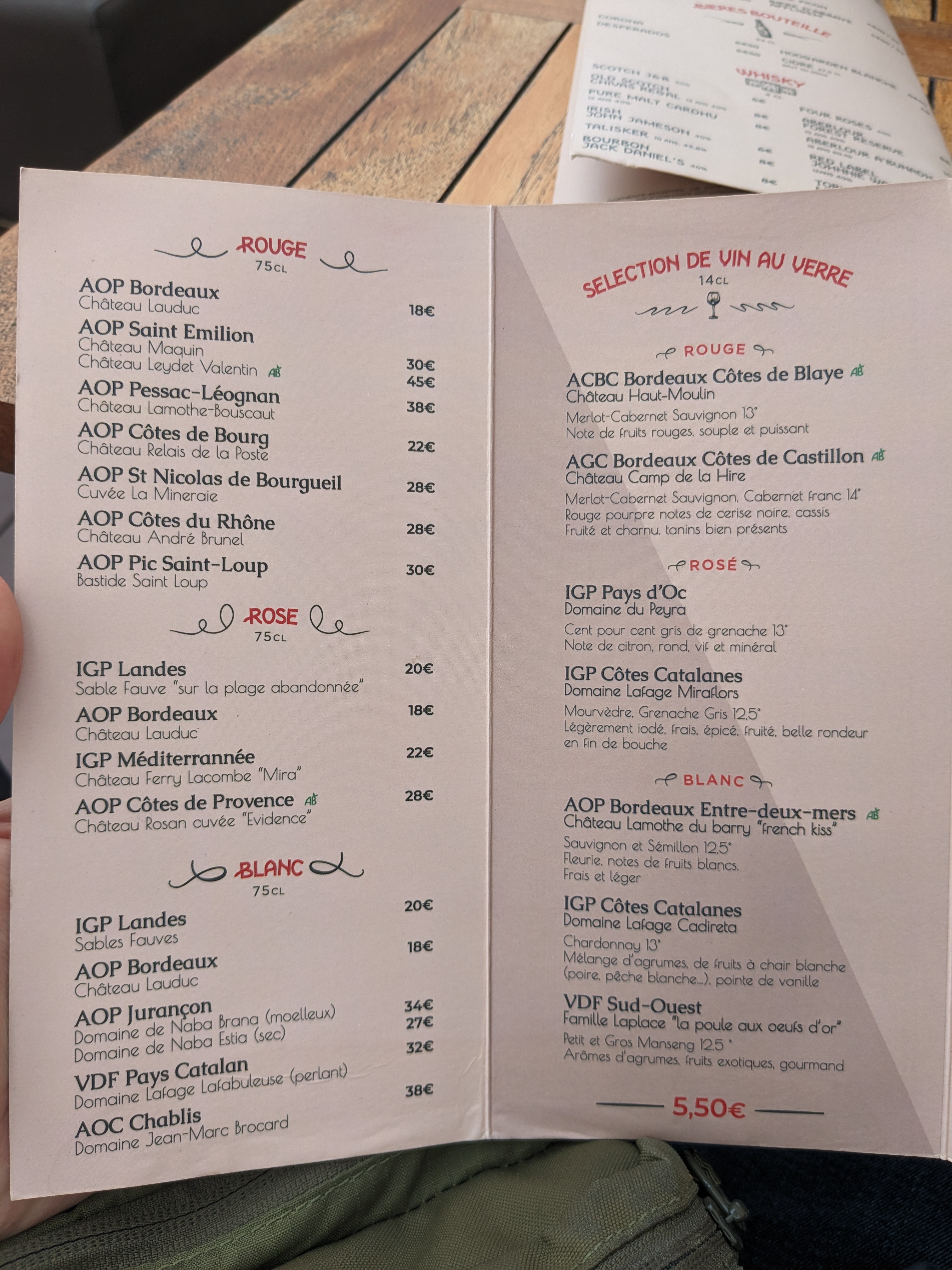 Teste 3 fois car c’était une bonne adresse 😉 Nous recommandons les burgers, les moules marinières et/ou plancha, les pâtes carbo. Le Château d’Alix en guise de vin rouge 🍷 J’avoue ne pas avoir aimé l’agneau. Bonne adresse sur Moliets 👍