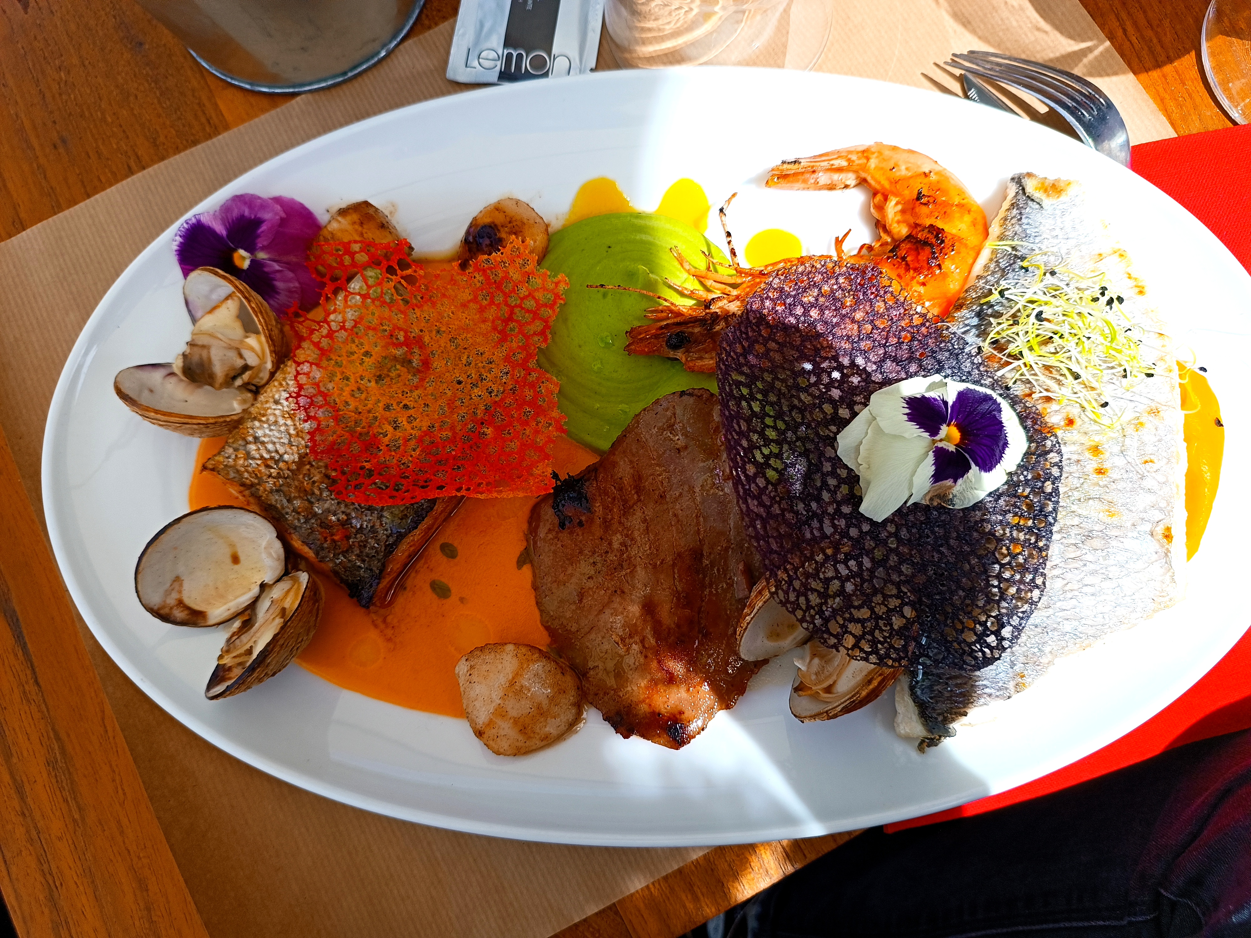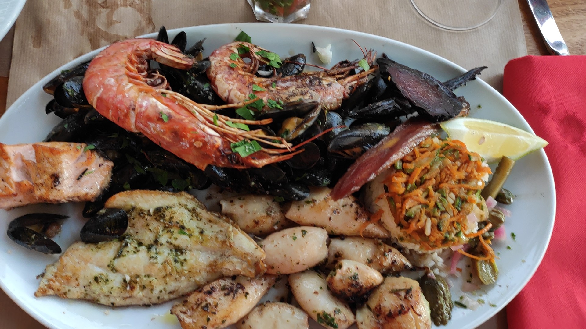 Bonjour nous somme venue ce midi manger en terrasse ,une seule viande au choix qui et cuit sur la même plancha que le poisson si nous somme allergique tempi pour nous ces sa ! Sauce échalotte 1€50 pour échalotte cramé sur une plancha je n'appelle pas sa une sauce échalotte mais un confit au pire des cas ! , et parillada de poissons très maigre 3 poissons au lieux de 5 comme énoncé sur la carte ,bref restaurant pas très serviable prix exorbitant pour ce qu'il y as dans nos assiettes deux seul accompagnement sur la carte frite ou riz et les frites sont surgelés .. bref voilà vraiment déçu ont ne reviendra pas !!!