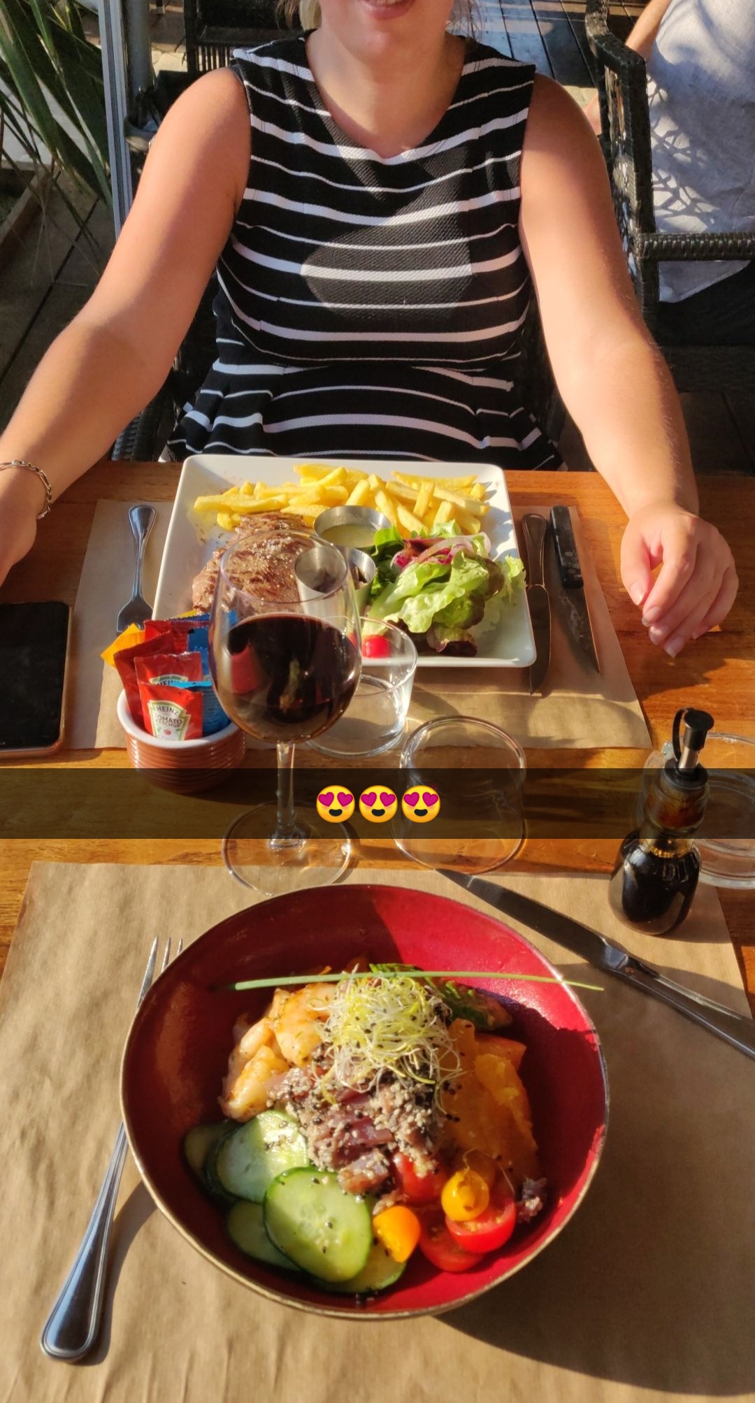 Une étoile pour le cadre très agréable. Pina colada et sex and the beach corrects. Chipirons à l apero trop grillés. Veggie poke bawl des betteraves dedans non indiquées sur la carte , le riz vinaigré indiqué sur la carte : vinaigre absent, houmous indiqué sur la carte : absent, falafels où l on retrouve uniquement le goût du curry, des ingrédients fades, sans aucune saveur. De plus nous étions installés sous la coursive qui n est pas un endroit en plein air mais où la cigarette est autorisée. Résultat nous avons dîner en respirant la fumée des clients de la table voisine. Nous nous sommes forcé à manger la moitié du pokey bpoke bawl nsipide, avons réglé l addition et sommes partis.