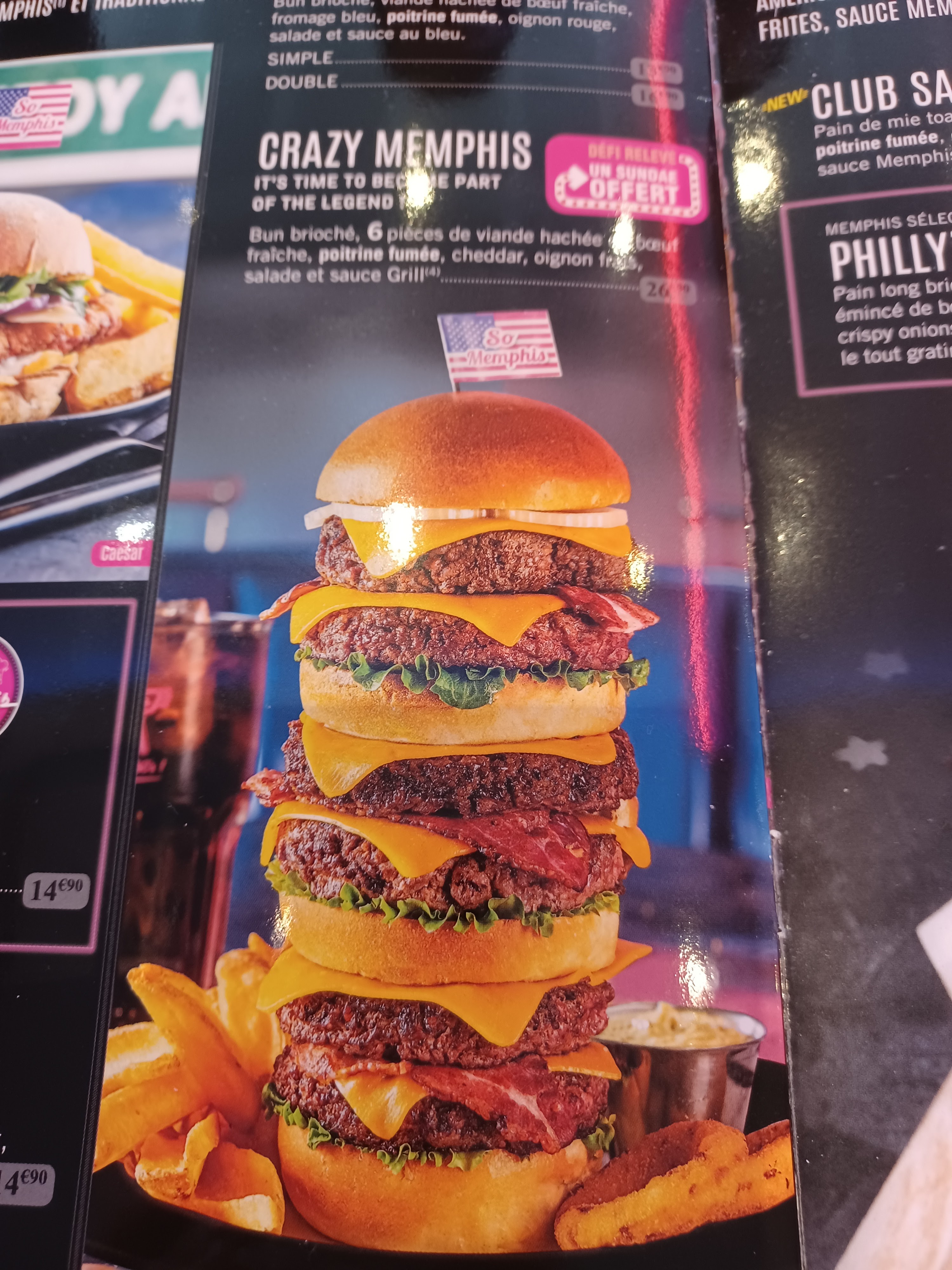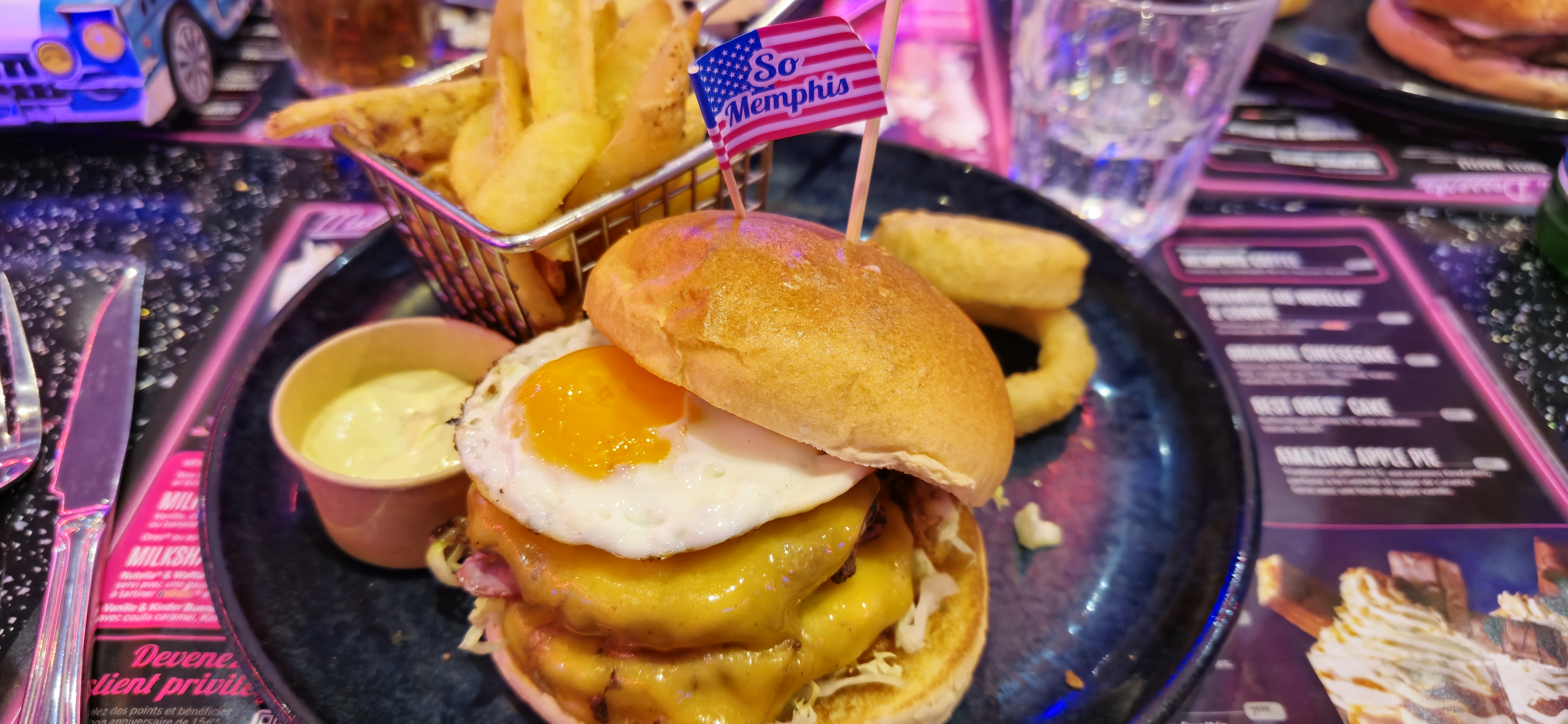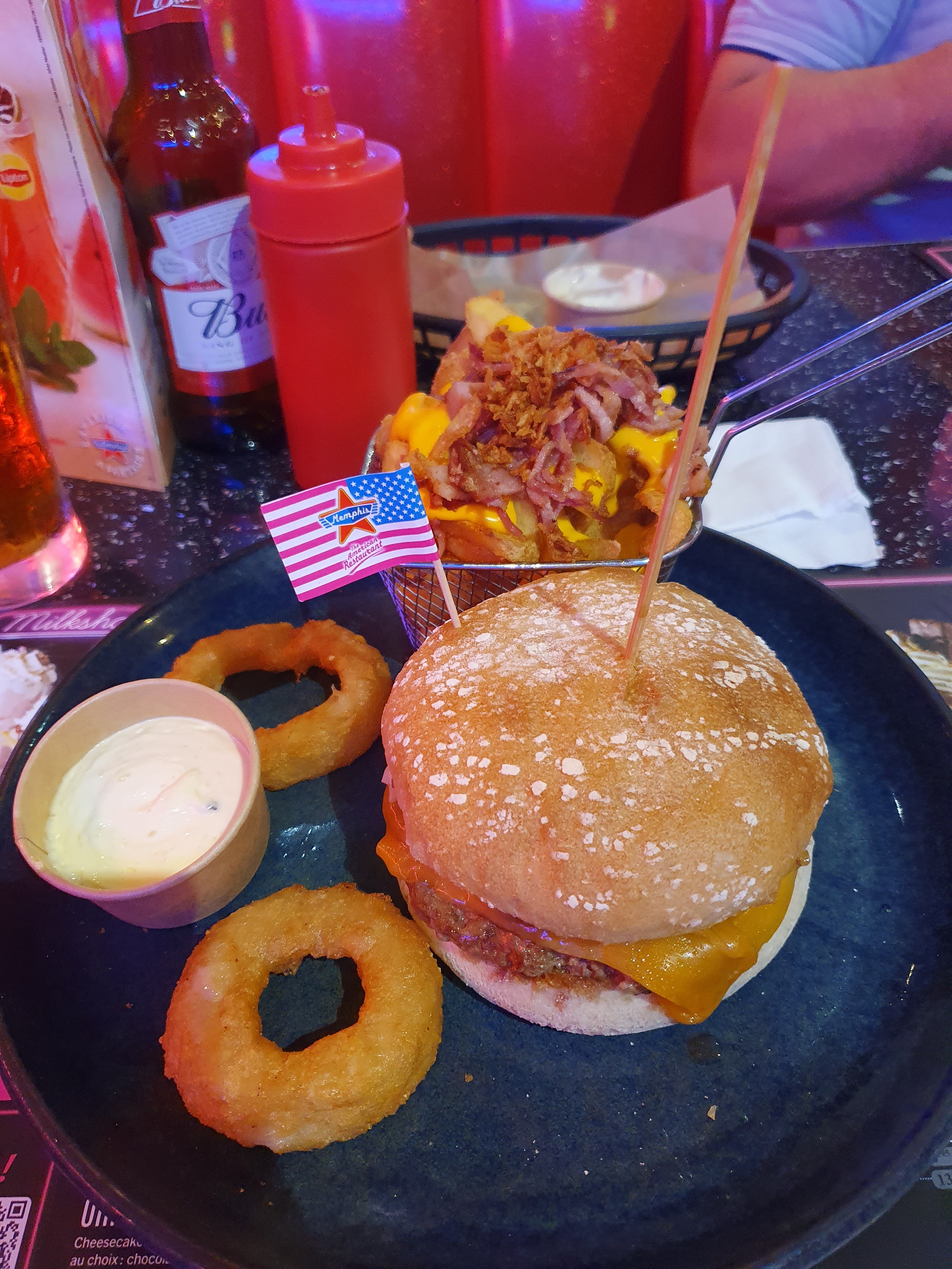 Nous avons dîné un vendredi soir il y a un mois, par curiosité après avoir vu les publicités pour le restaurant Memphis. Première impression très positive en découvrant le lieu : On fait un bond aux USA et on retrouve cet esprit dinner américain aux niveaux des décorations, du mobilier, des couleurs... Malheureusement la nourriture n'a pas été à la hauteur. Sur les quantités ok rien a redire mais c'est la qualité du repas. La cuisson de nos burgers était trop grasse. Résultats nous sommes sortis du restaurant avec un goût de graisse et le sentiment que le repas nous est resté sur l'estomac. Des maux de ventre pour 2/3 des personnes qui ont mangé la bas á cause des burgers. Pour cette raison nous ne reviendrons pas et c'est dommage car nous aurions aimé y retourner pour le cadre et nous aimons manger fast food Mais cette sensation de graisse a outrance nous a trop écoeurée.