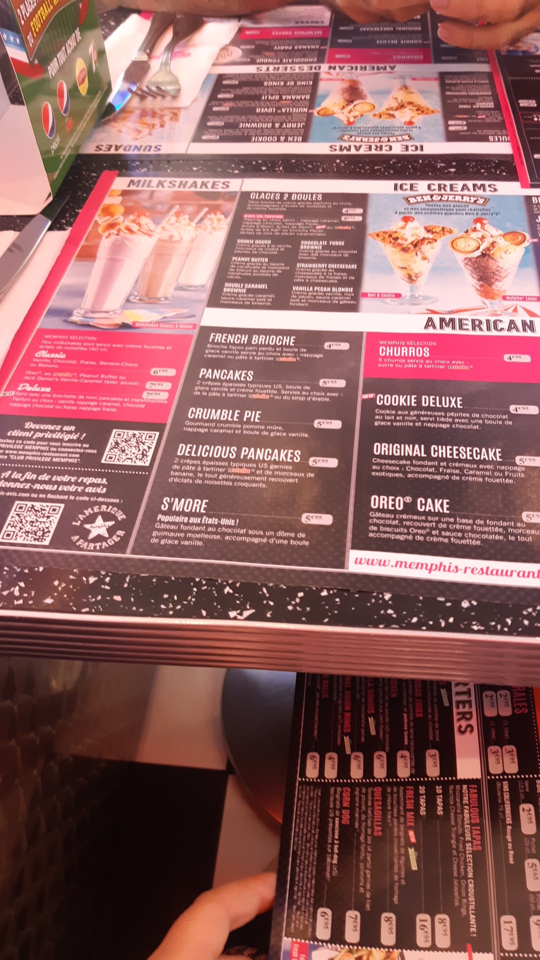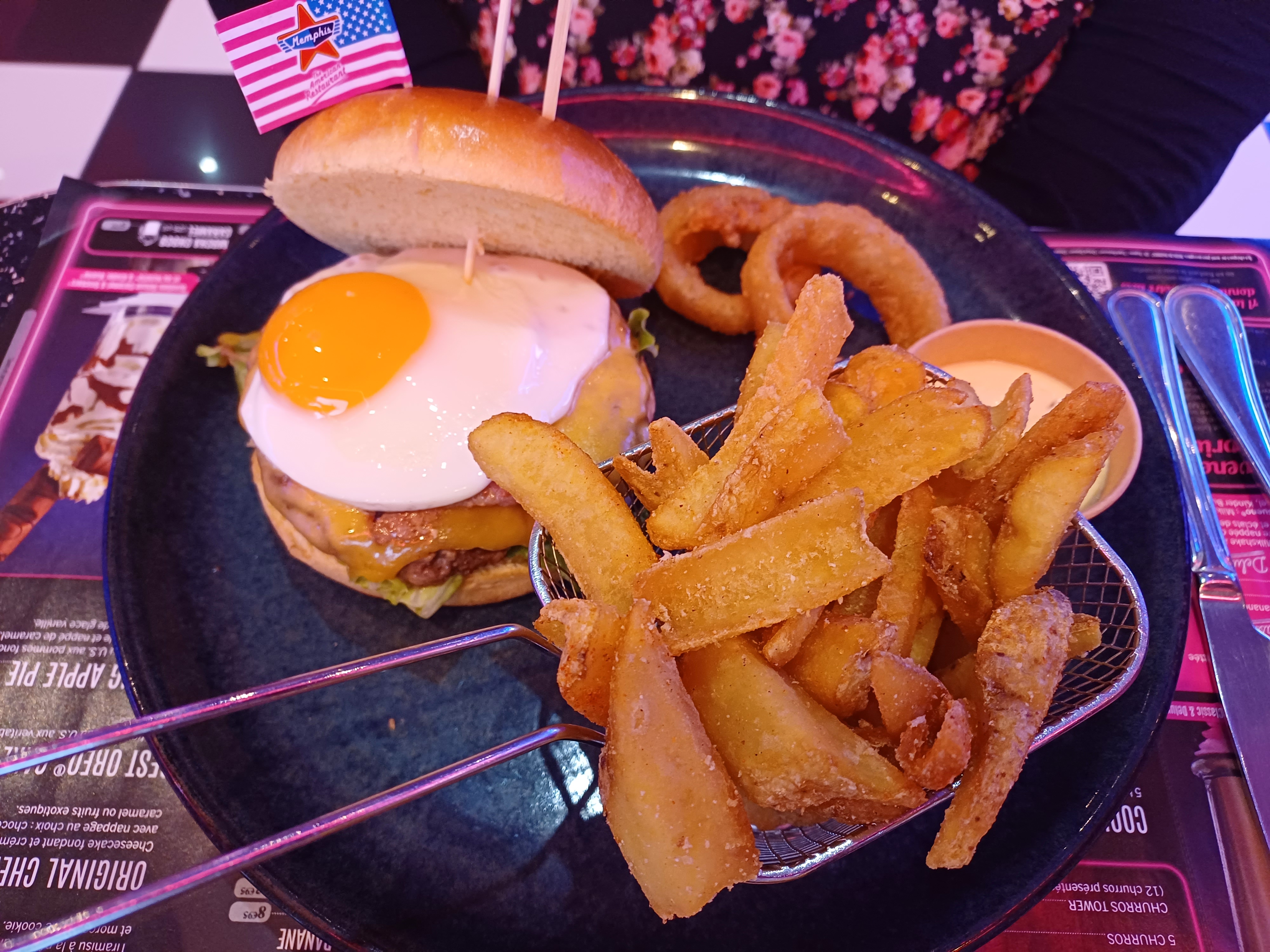 Bonne expérience au Memphis, attente un peu longue mais ça allait quand même. Les burgers étaient bons ainsi que les desserts. Les frites sont bonnes. Les desserts sont également sympathique. Néanmoins, toilettes à odeur désagréable, ainsi que pas de savons dans les toilettes pour se laver les mains... Parking devant le restaurant.