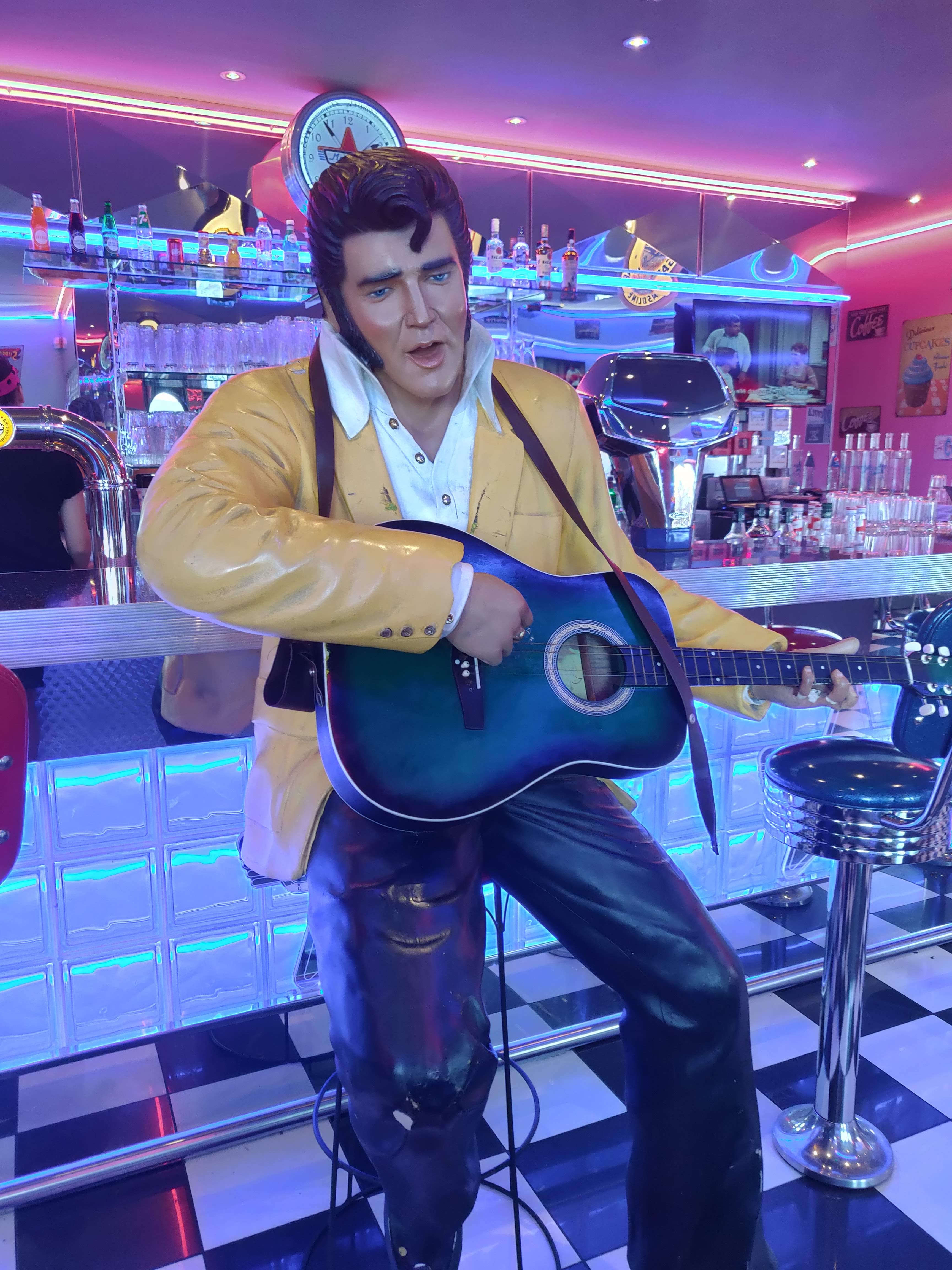 Restaurant sur le thème de l'Amérique des années 50 et 60. Cadre sympathique et vintage avec la statue d'Elvis Presley qui vous accueille. Large choix de burgers, de grillades et quelques salades. Le Burger Memphis est attirant sur le menu mais manque de goût. Peu salé ce qui est plutôt bien. Servi avec des frites, deux morceaux d'oignons. Sauce frite et une petite salade coleslaw. Espace spacieux. Il manque un peu de musique pour être dans le thème malgré la présence d'un jukebox.