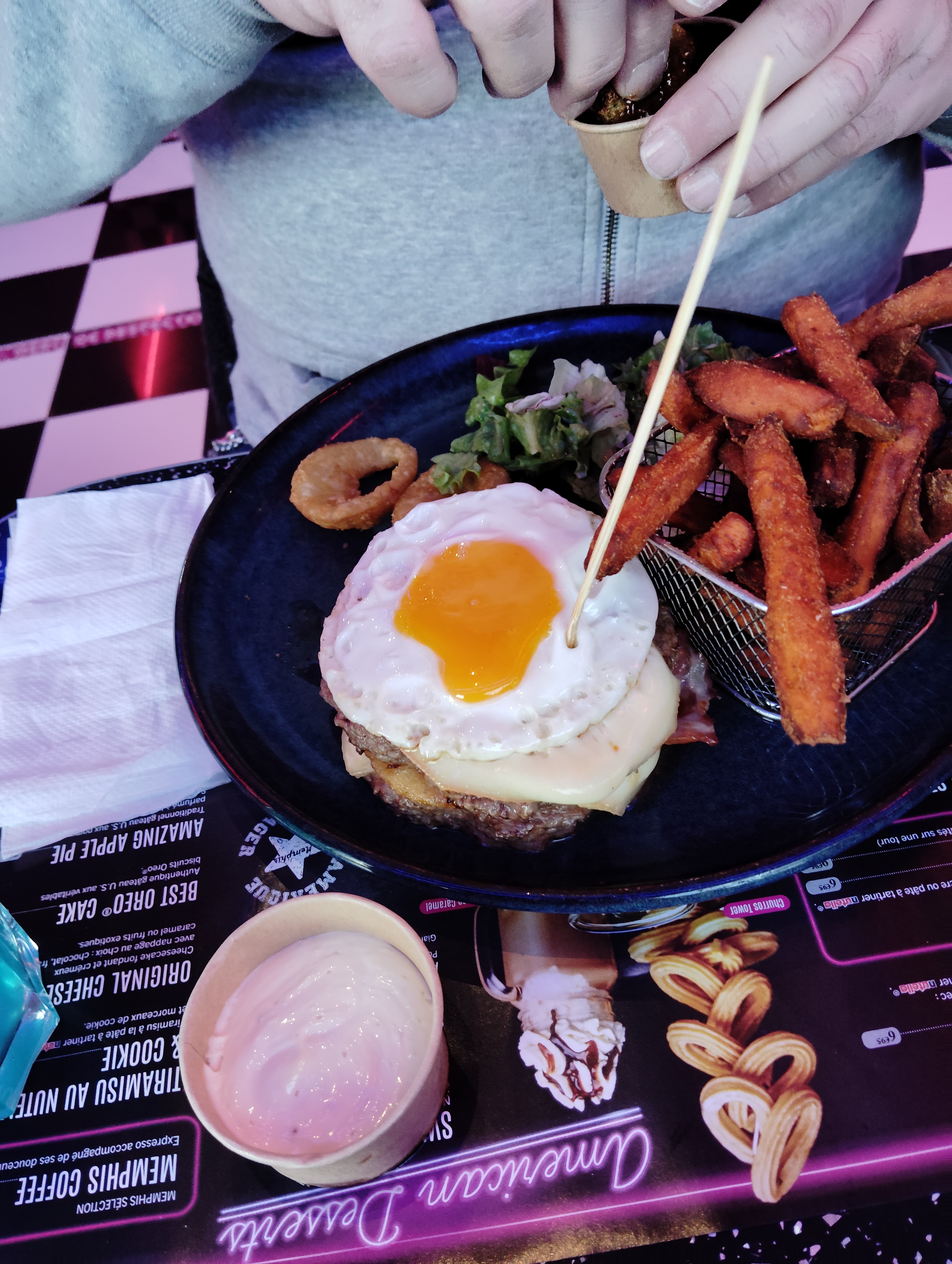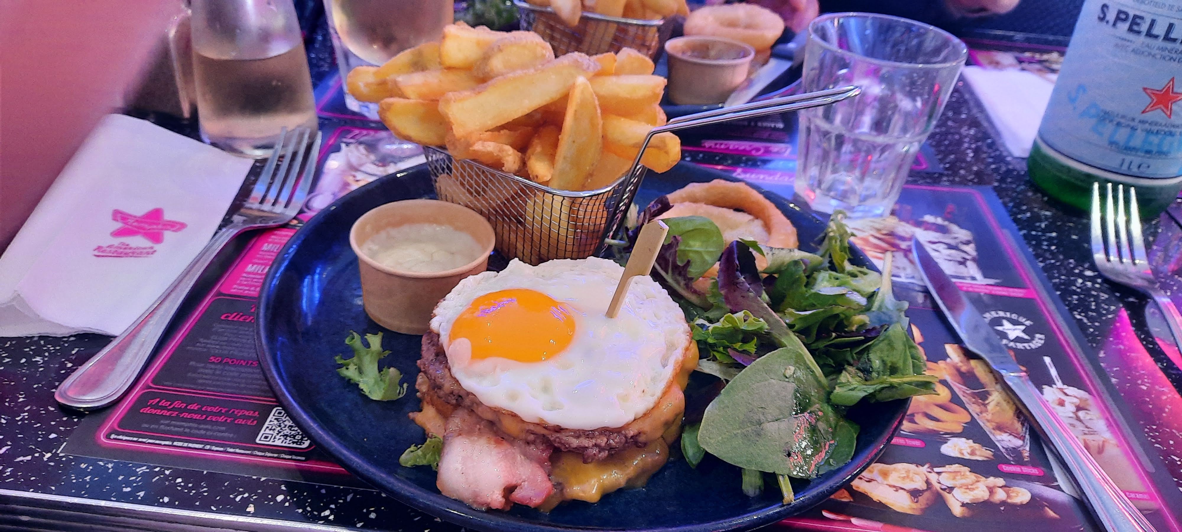 Nous venons quelques fois. Cette fois un dimanche soir pas d'attente comme un samedi où ça avait été très long. La décoration nous fait faire un bon en arrière aux États-Unis. C'est sympa, les enfants sont ravis avec le menu enfant servi dans une voiture. Le Memphis burger est top avec ses trois viandes et sa sauce. Un peu plus de frites n'aurait pas été de refus. Très sympa dans l'ensemble. On reviendra.