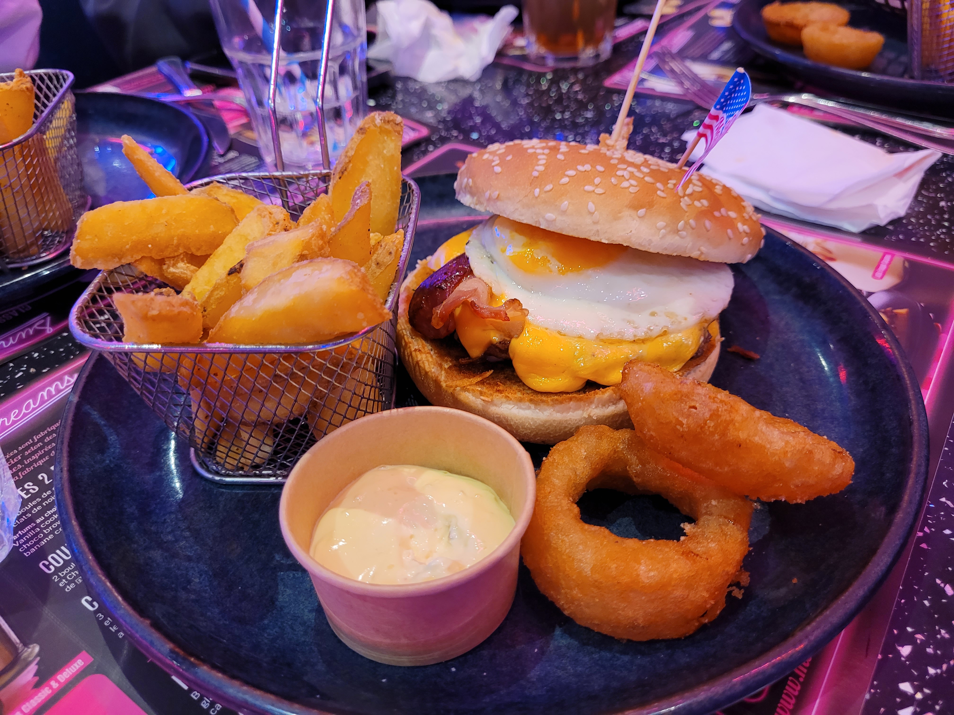 L'ambiance est originale, les burgers que nous avions choisis étaient bons et les desserts très (trop ?) gourmands. Les boissons étaient un peu décevantes (cocktail Pina Colada Spicy Mango trop sucré et bière pression du moment trop amère).