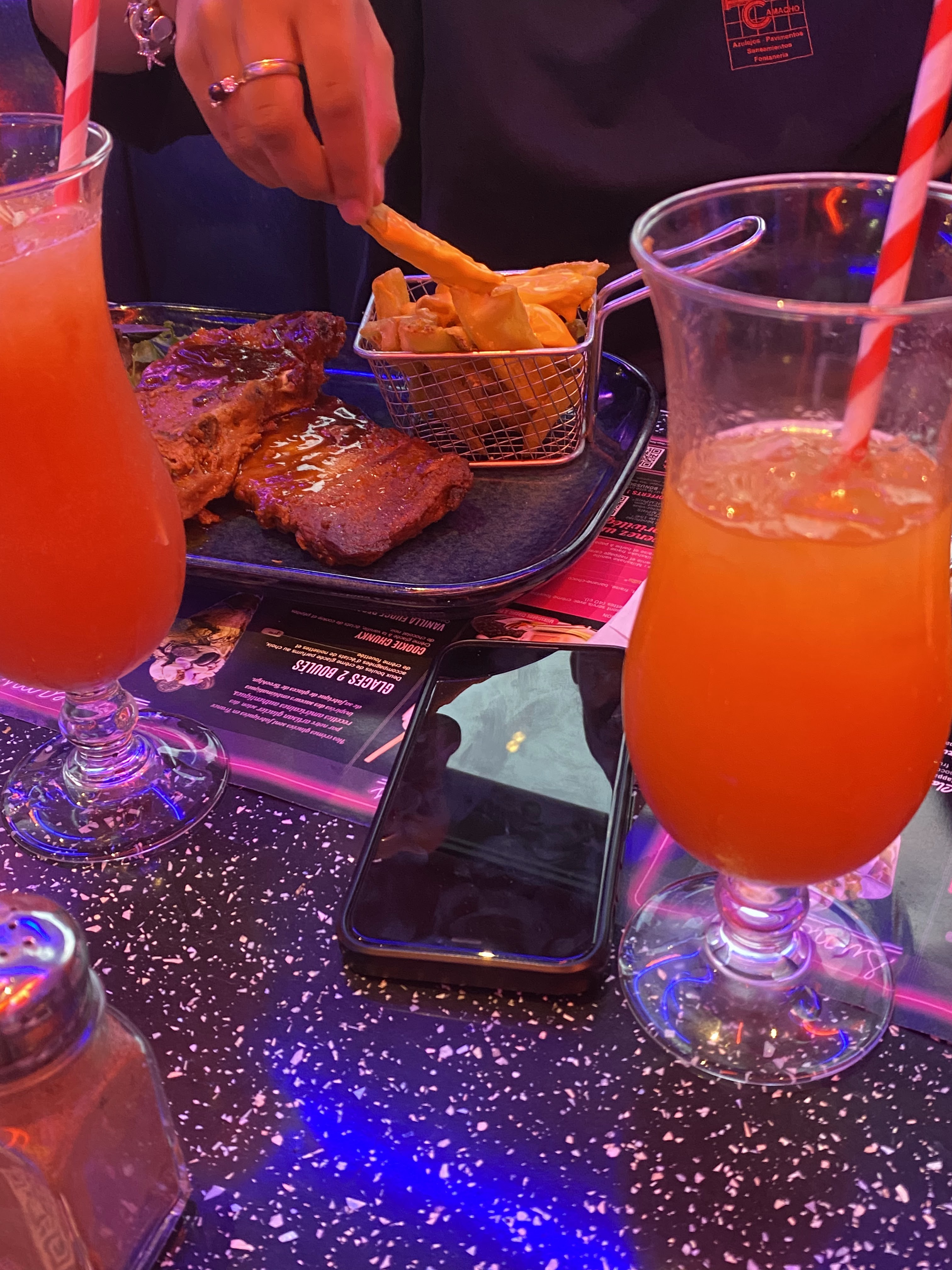 Top top top 👍🏼 on se croirait presque comme dans les cafés des states 🇺🇸 presque comme dans les séries sauf que les serveuses ne sont pas en tenue les superbes photos des stars aux murs Le cadre la musique les décors l’endroit Et la nourriture miam Mes enfants et mon mari se sont régalés de burgers big comme as les ribbs tendres mais sans être noyer sous la sauce j’aurais préféré et les frites croustillantes croquantes Entre les cocktails les plats et le déserts pour 5 on s’en tire pour 145 euros à savoir que cela nous fait 20 euros en moins sur la prochaine note on y retournera c’est sûr