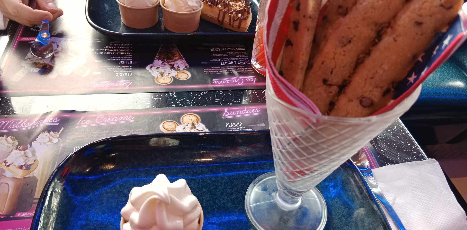 belle endroit, restaurant propre, serveur super gentils. du choix sur la carte, mais pas mal de produit manquant, pas de poulet… le steak haché dans le burger est très petit.. j’ai pris en dessert le ice cream cookie un peu déçu, le cookie très dur il aurait fallu mettre de la pâte à cookie crue pour que ça soit plus gourmand ou mis cuit.